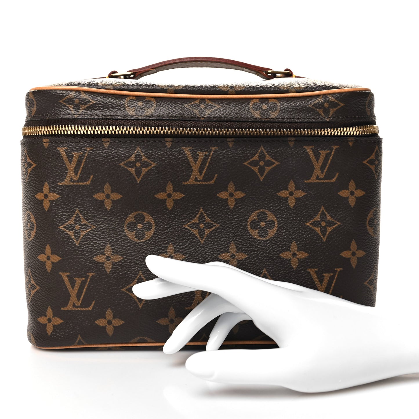 This is an authentic LOUIS VUITTON Monogram Nice BB. This handy travel case, named after the French city of Nice, is crafted from the traditional Louis Vuitton monogram canvas. The case features a vachetta cowhide leather top handle and piping trim. The polished gold wrap-around zipper opens to a beige-coated canvas lining with zipper and patch pockets.Follow this item for alerts. Louis Vuitton is a registered trademark of Louis Vuitton. FASHIONPHILE is not affiliated with Louis Vuitton.