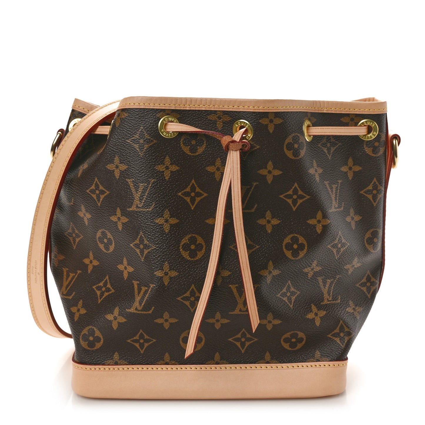 This is an authentic LOUIS VUITTON Monogram Noe BB. This classic bucket style shoulder bag is crafted of Louis Vuitton monogram on coated canvas. The shoulder bag features vachetta cowhide leather including a solid base, an adjustable shoulder strap, a top cinch strap, and polished brass hardware. This bag opens to a brown fabric interior.Follow this item for alerts. Louis Vuitton is a registered trademark of Louis Vuitton. FASHIONPHILE is not affiliated with Louis Vuitton.