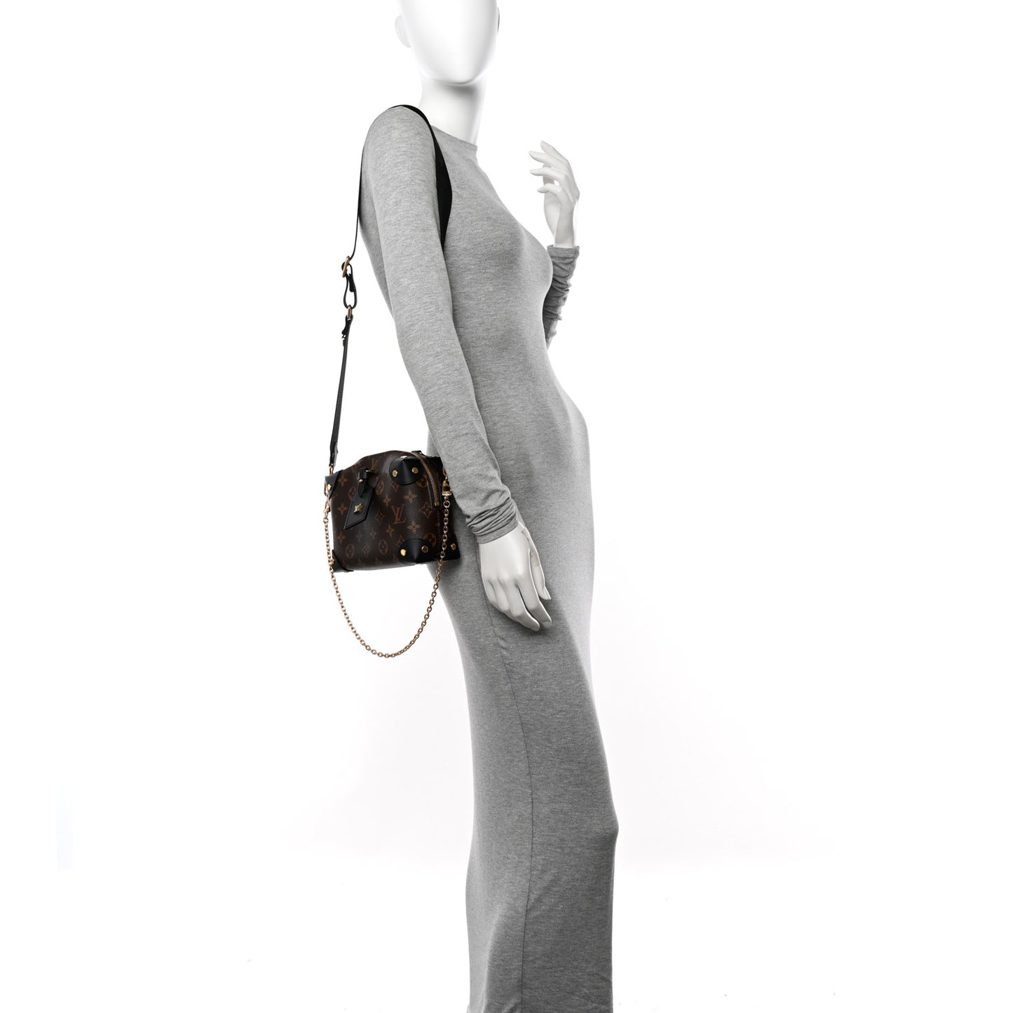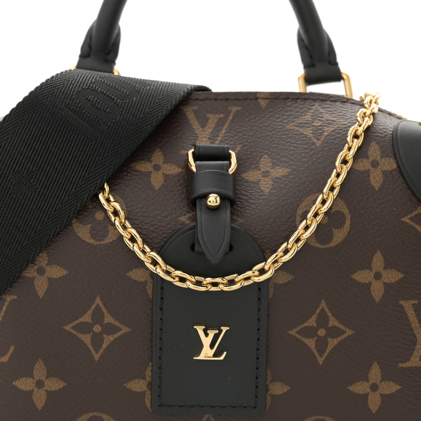 This is an authentic LOUIS VUITTON Monogram Petite Malle Souple in Black. This stylish handbag is crafted of Louis Vuitton monogram toile canvas, with black leather corner details. The bag features a rolled leather top handle, a polished gold chain shoulder strap and an adjustable black canvas shoulder strap with polished gold hardware. The top zipper opens to a black microfiber interior with a zipper pocket.Follow this item for alerts. Louis Vuitton is a registered trademark of Louis Vuitton. FASHIONPHILE is not affiliated with Louis Vuitton.