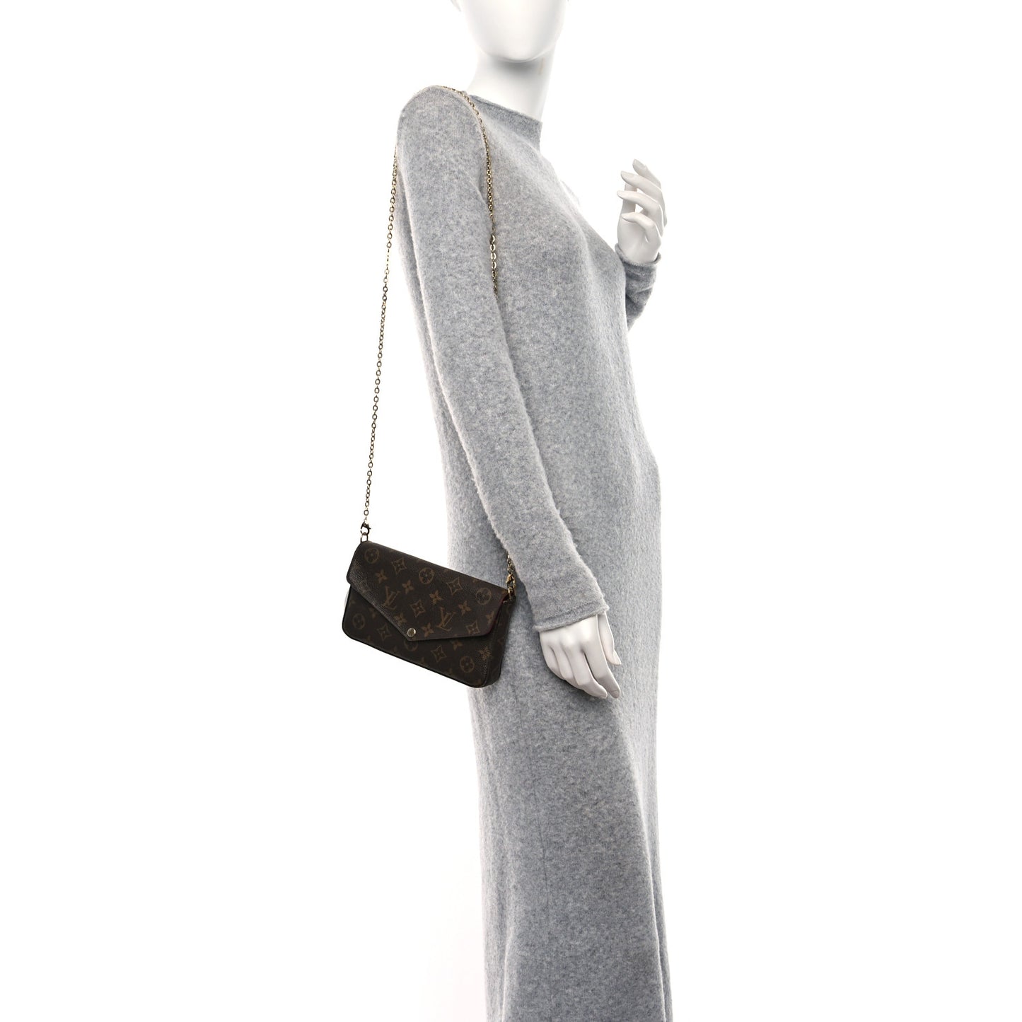 This is an authentic LOUIS VUITTON Monogram Pochette Felicie Chain Wallet in Fuchsia. This stylish clutch is crafted of Louis Vuitton monogram coated canvas with a removable polished gold chain strap. The bag features an envelope style facing flap that opens to a dark pink fabric interior with a patch pocket and two removable inserts.Follow this item for alerts. Louis Vuitton is a registered trademark of Louis Vuitton. FASHIONPHILE is not affiliated with Louis Vuitton.