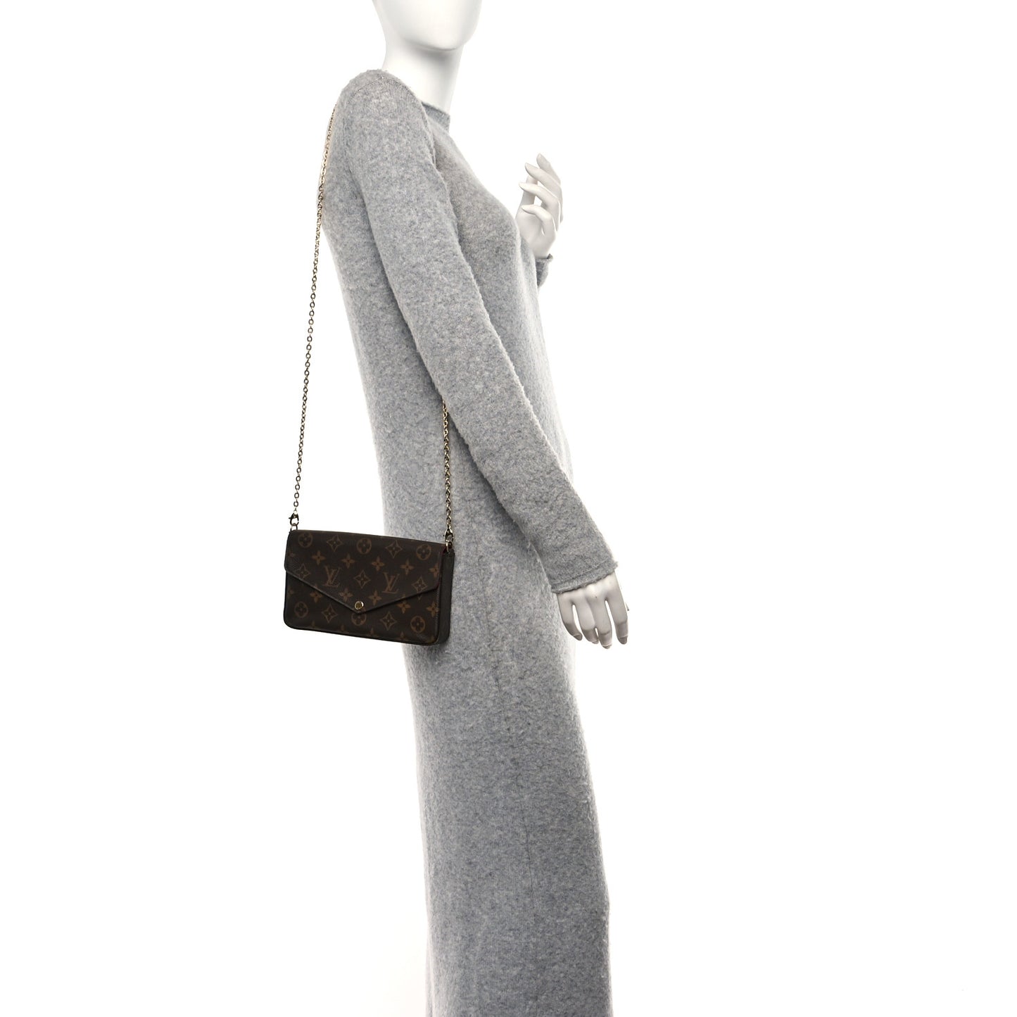 This is an authentic LOUIS VUITTON Monogram Pochette Felicie Chain Wallet in Fuchsia. This wallet is crafted in Louis Vuitton monogram toile dark brown coated canvas. The bag features an envelope style facing flap and a gold detachable shoulder strap. This opens to a fuchsia fabric interior with a patch pocket and two inserts.Follow this item for alerts. Louis Vuitton is a registered trademark of Louis Vuitton. FASHIONPHILE is not affiliated with Louis Vuitton.