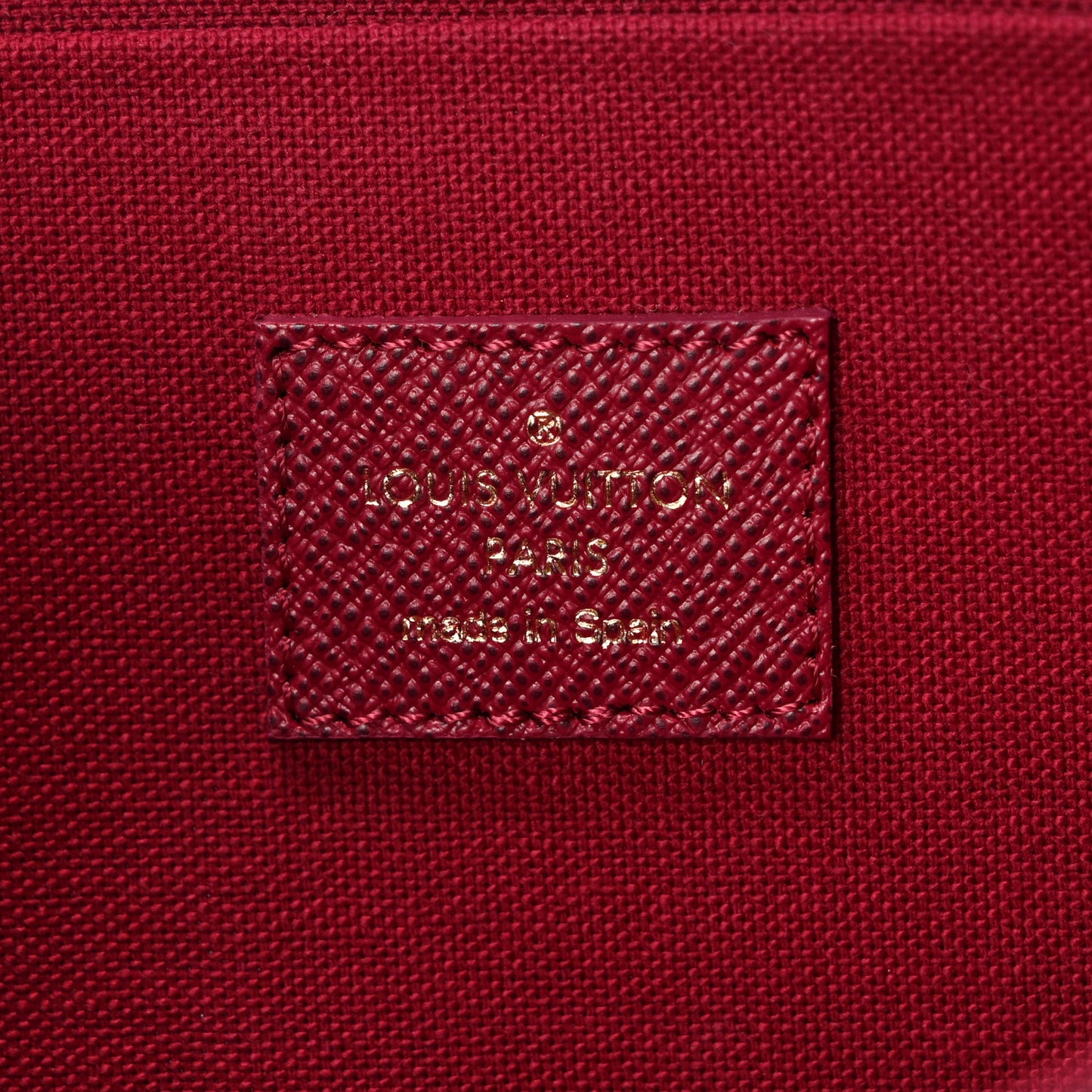 This is an authentic LOUIS VUITTON Monogram Pochette Felicie Chain Wallet in Fuchsia. This pouch is crafted of Louis Vuitton monogram coated toile canvas in brown with gold-toned d-rings to attach the optional chain strap. The envelope-style flap unsnaps to a dark pink fabric interior with a patch pocket and two removable inserts.Follow this item for alerts. Louis Vuitton is a registered trademark of Louis Vuitton. FASHIONPHILE is not affiliated with Louis Vuitton.