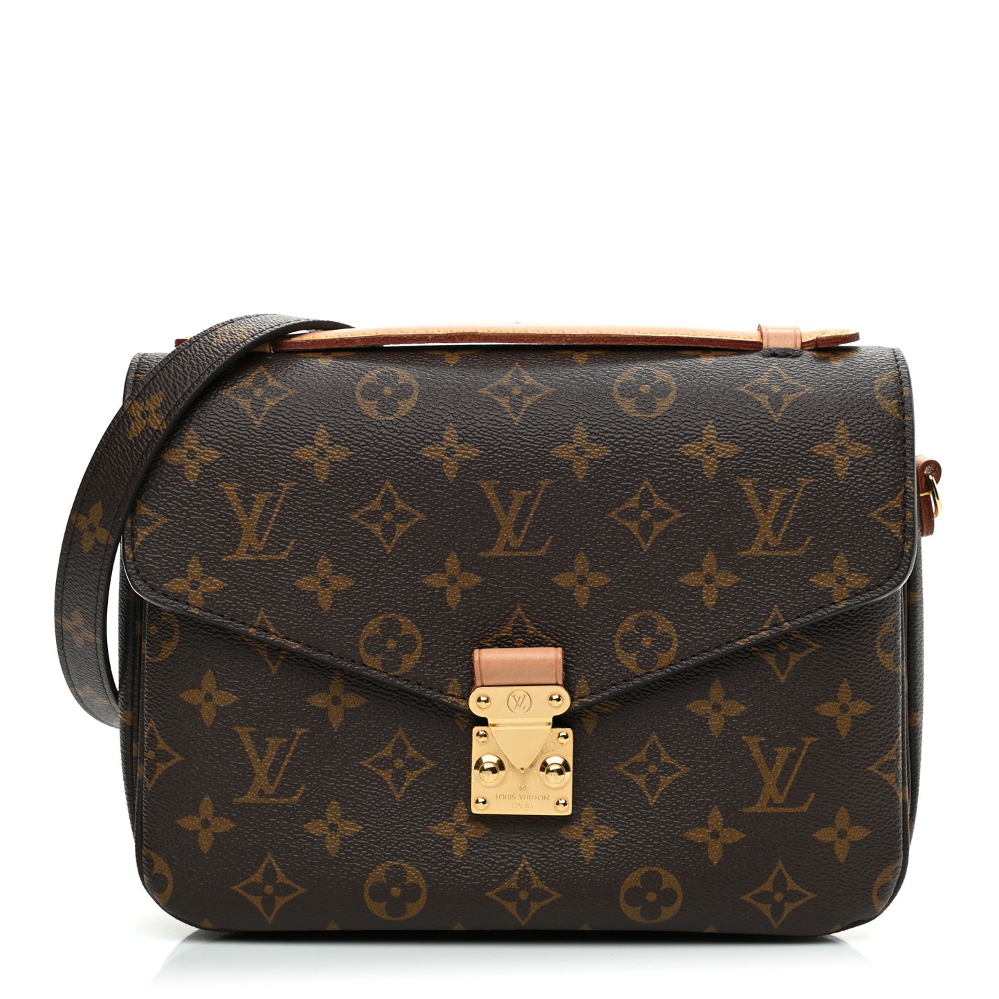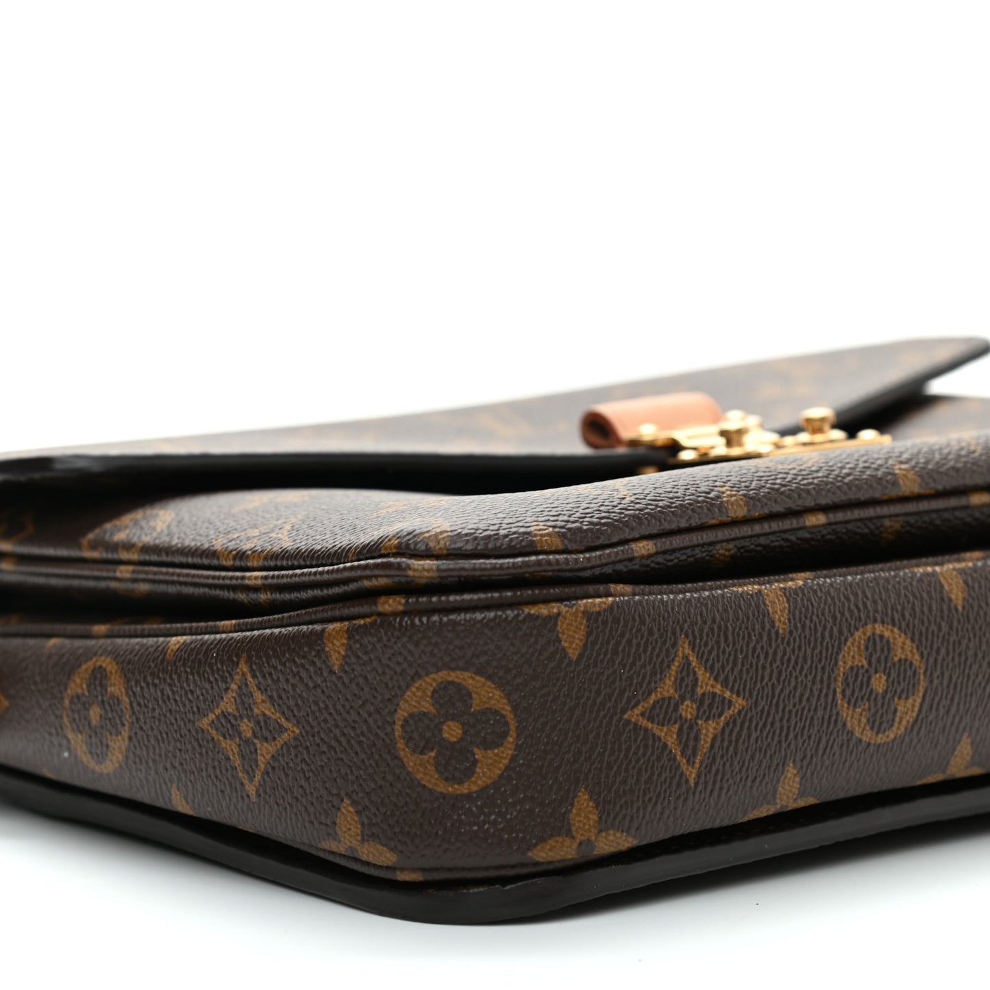 This is an authentic LOUIS VUITTON Monogram Pochette Metis. This chic handbag is finely crafted of classic Louis Vuitton monogram toile canvas. The bag features a vachetta cowhide leather top handle, optional shoulder strap and a rear zipper pocket. The envelope-style crossover flap opens with a polished brass S-lock to a partitioned brown microfiber interior.Follow this item for alerts. Louis Vuitton is a registered trademark of Louis Vuitton. FASHIONPHILE is not affiliated with Louis Vuitton.