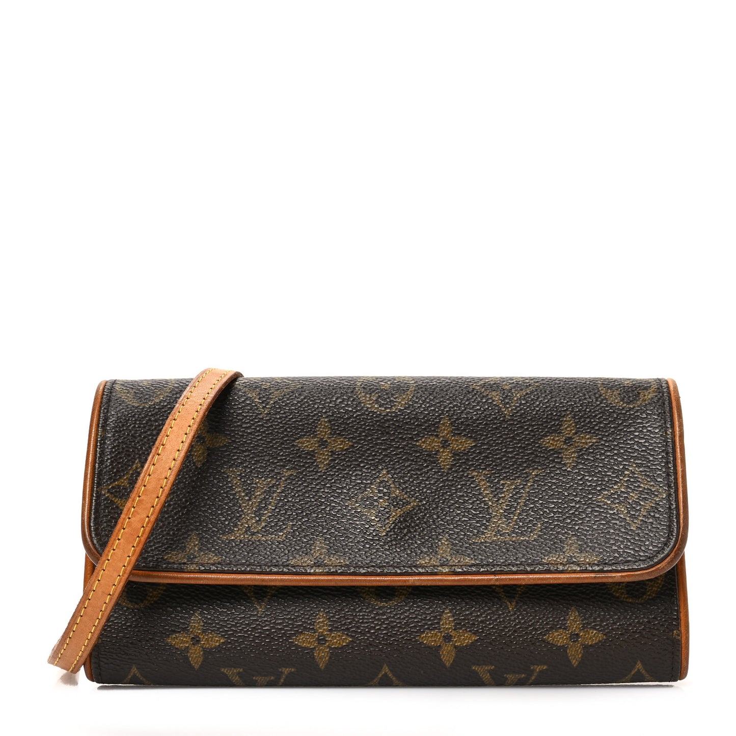 This is an authentic LOUIS VUITTON Monogram Pochette Twin PM. This classic pochette is crafted of a classic brown Louis Vuitton monogram on toile canvas. This handbag features a removable vachetta cowhide shoulder strap and a long flap that opens to a beige microfiber interior.Follow this item for alerts. Louis Vuitton is a registered trademark of Louis Vuitton. FASHIONPHILE is not affiliated with Louis Vuitton.
