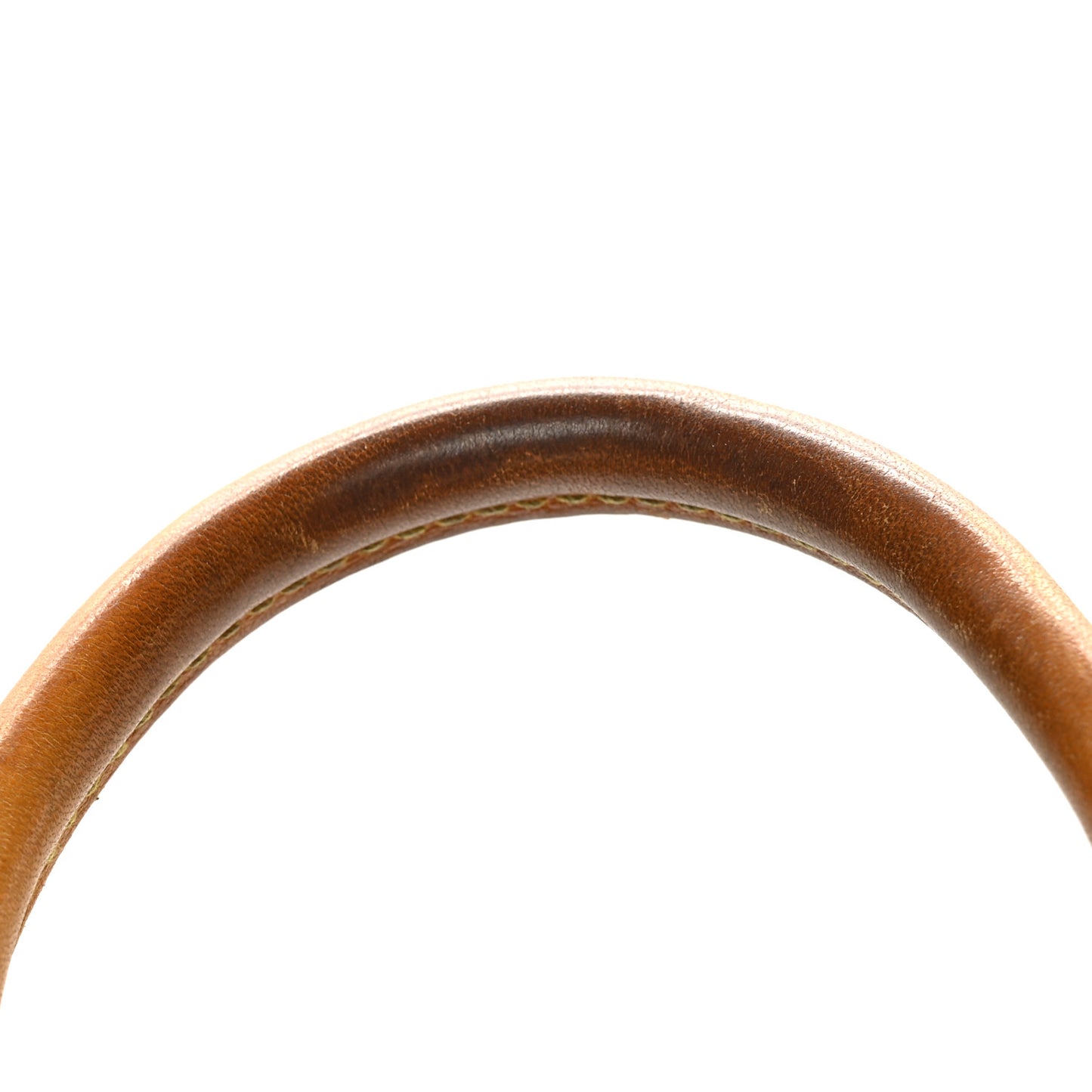 Handle: Scuffs, wear at resin glazing, darkening, patina of vachetta, marks