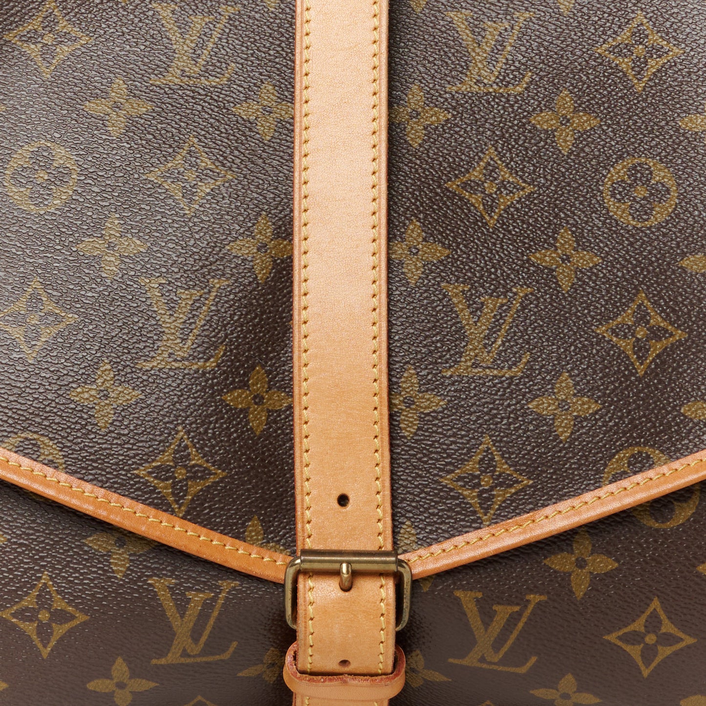 This is an authentic LOUIS VUITTON Monogram Saumur 35. This classic messenger bag is crafted of traditional Louis Vuitton monogram on coated canvas. The bag features signature vachetta cowhide leather trim, side buckle cinches, and an adjustable shoulder strap with brass hardware. The bag opens on either side with a belt buckle closure to a cocoa brown fabric interior with patch pockets.Follow this item for alerts. Louis Vuitton is a registered trademark of Louis Vuitton. FASHIONPHILE is not affiliated with Louis Vuitton.