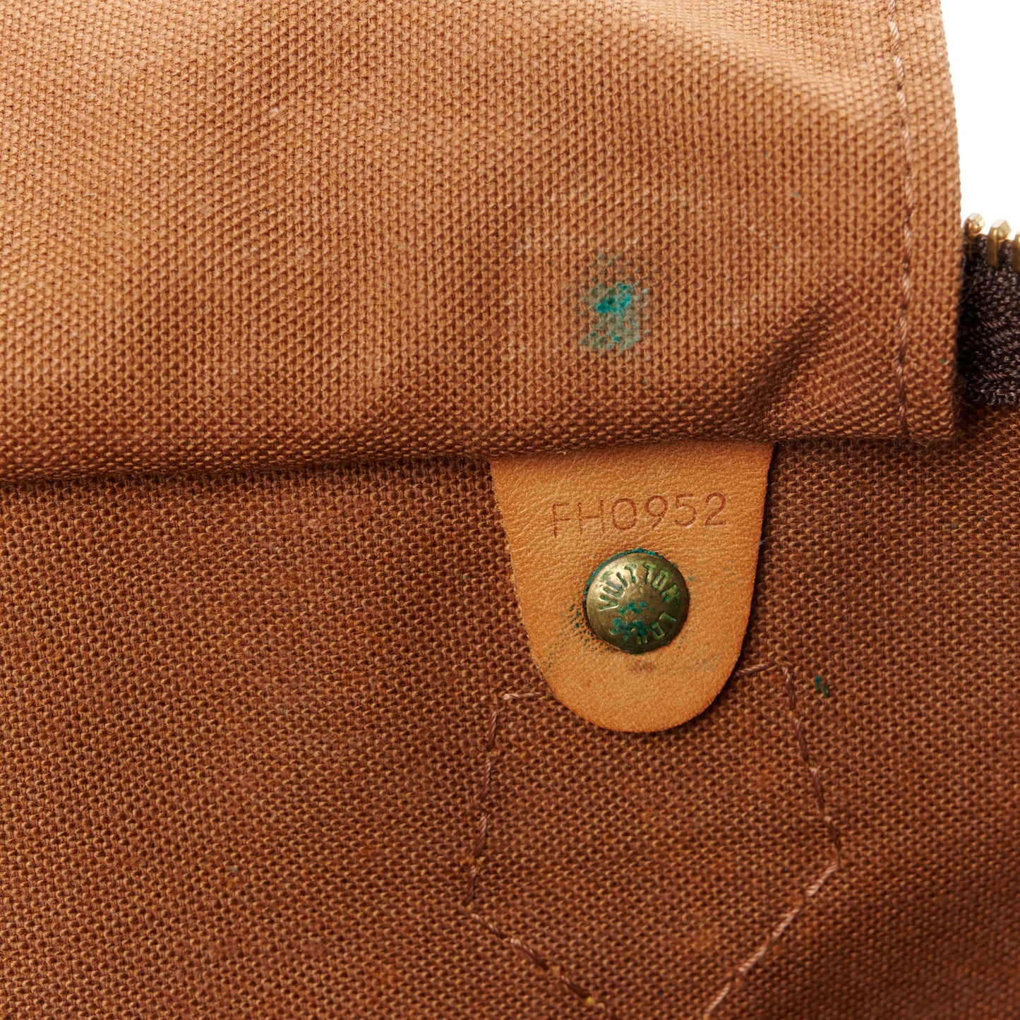This is an authentic LOUIS VUITTON Monogram Speedy 30. This classic handbag is crafted of traditional Louis Vuitton monogram toile coated dark brown canvas. The bag features vachetta cowhide rolled leather top handles and trim with polished brass hardware The top zipper opens to a cocoa brown fabric interior with a hanging patch pocket.