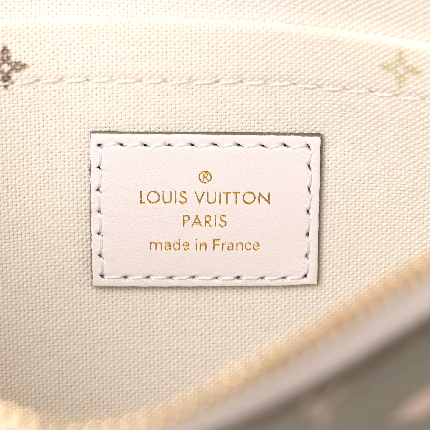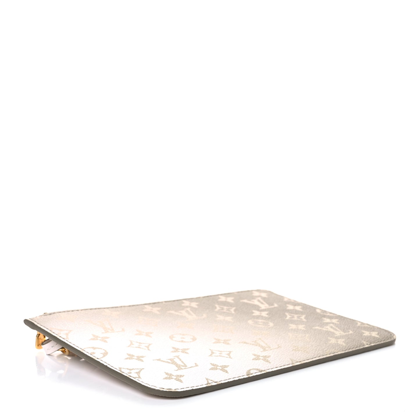 This is an authentic LOUIS VUITTON Monogram Spring In The City Neverfull MM GM Pochette in Sunset Kaki. This chic pochette is crafted of Louis Vuitton monogram on coated canvas in a gradient beige to green. This pochette features a removable leather wristlet strap and a polished gold-tone top zipper that opens to a fabric interior with a flat pocket.Follow this item for alerts. Louis Vuitton is a registered trademark of Louis Vuitton. FASHIONPHILE is not affiliated with Louis Vuitton.