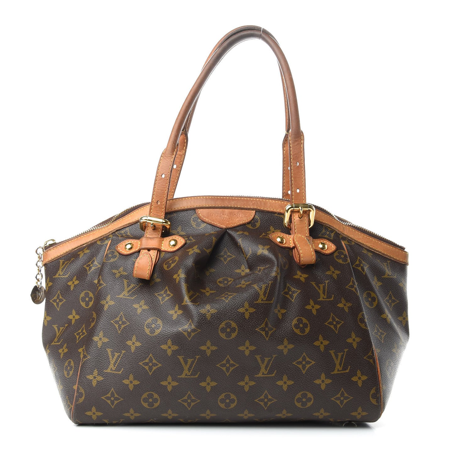 This is an authentic LOUIS VUITTON Monogram Tivoli GM. This stylish tote is finely crafted of pleated Louis Vuitton monogram on toile canvas. The shoulder bag features signature natural vachetta leather trim, adjustable rolled leather top handles, and polished brass hardware. The top zipper opens to a cocoa brown fabric interior with patch pockets and a D ring.Follow this item for alerts. Louis Vuitton is a registered trademark of Louis Vuitton. FASHIONPHILE is not affiliated with Louis Vuitton.
