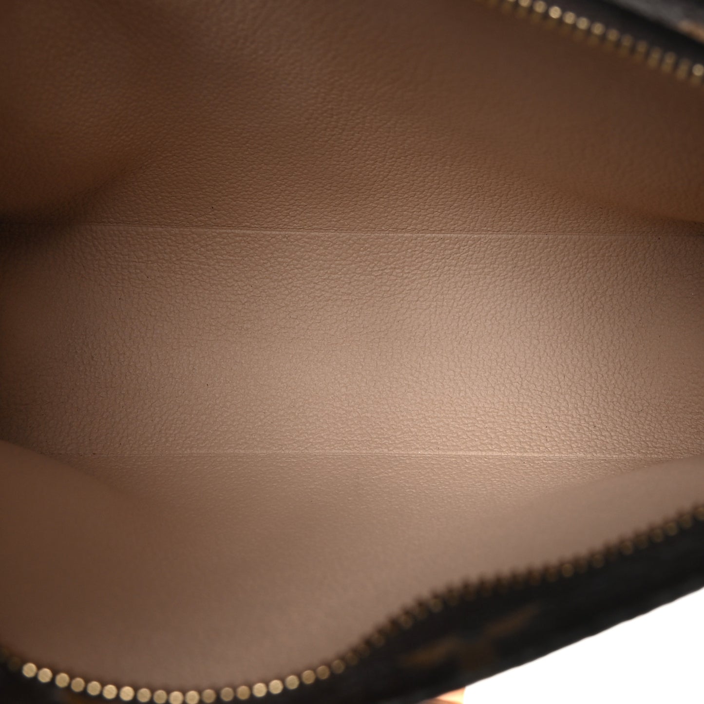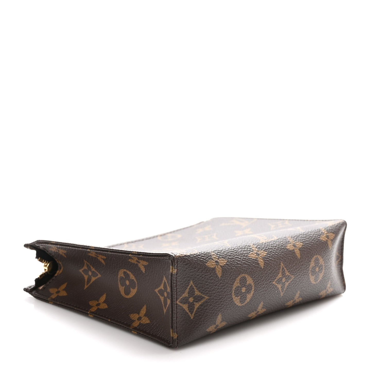 This is an authentic LOUIS VUITTON Monogram Toiletry Pouch 19. This small cosmetic pouch is crafted of classic Louis Vuitton monogram on toile, dark brown canvas. The pouch has a polished brass top zipper that opens to a beige leather like interior.Follow this item for alerts. Louis Vuitton is a registered trademark of Louis Vuitton. FASHIONPHILE is not affiliated with Louis Vuitton.