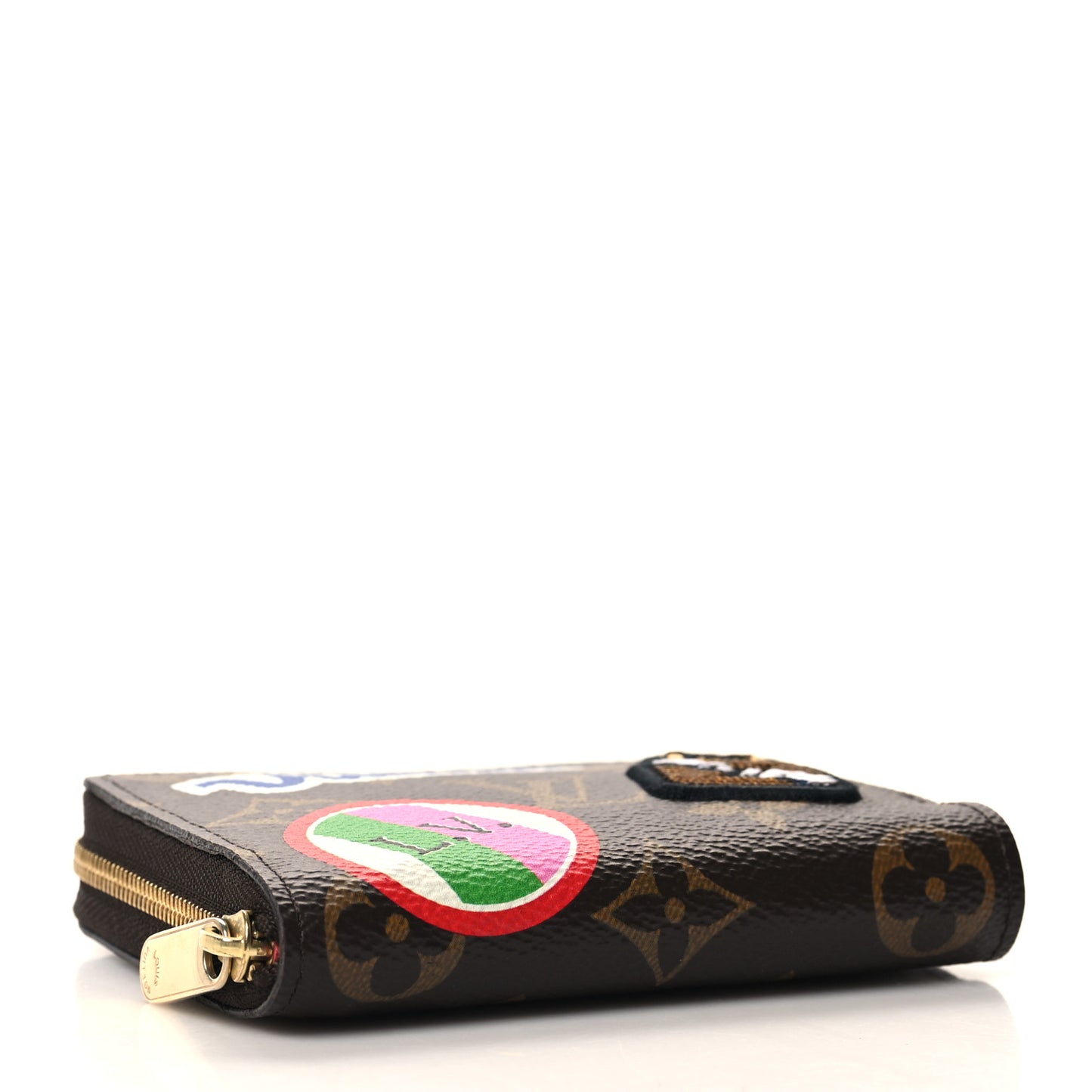This is an authentic LOUIS VUITTON Monogram Travel Stickers Zippy Coin Purse. This chic wallet is crafted of Louis Vuitton monogram on toile canvas with brightly colored stamps and a sequined patch lock. There is a wrap-around gold tone zipper that opens to a partitioned crossgrain pink leather interior with card slots, patch pockets, and open compartments.Follow this item for alerts. Louis Vuitton is a registered trademark of Louis Vuitton. FASHIONPHILE is not affiliated with Louis Vuitton.