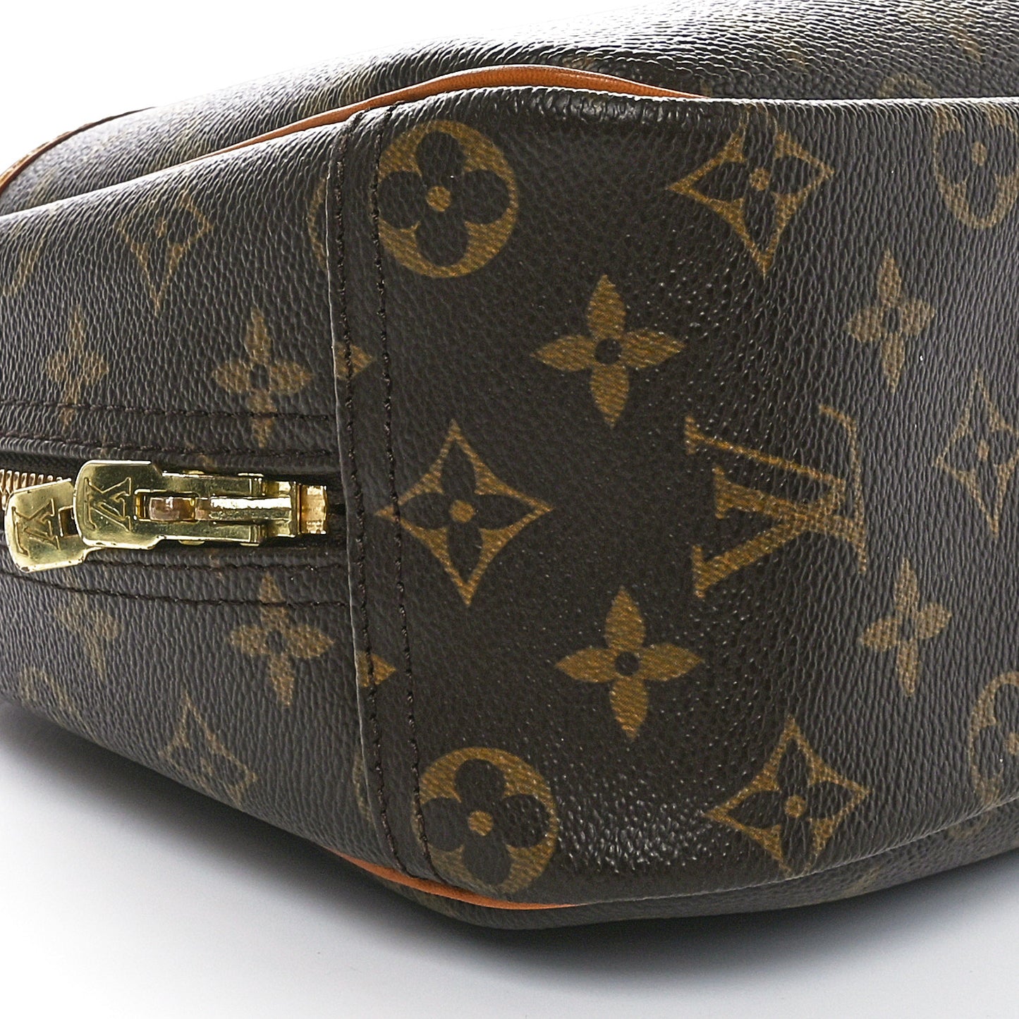 This is an authentic LOUIS VUITTON Monogram Trouville. This classic handbag is finely crafted of Louis Vuitton monogram on toile canvas with vachetta detail, including rolled top handles and trim. The bag features a front patch pocket and polished brass hardware. The wrap-around zippers open the bag to a natural coated canvas interior with patch pockets.Follow this item for alerts. Louis Vuitton is a registered trademark of Louis Vuitton. FASHIONPHILE is not affiliated with Louis Vuitton.