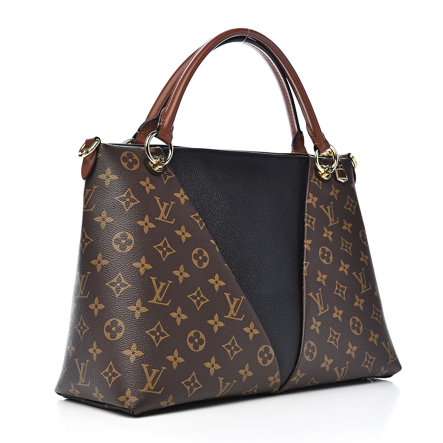 This is an authentic LOUIS VUITTON Monogram V Tote MM in Black. This chic handbag is crafted of Louis Vuitton monogram on coated canvas with black leather trim. The bag features polished brass hardware, rolled leather handles, an a top zipper. The top zipper opens to a black microfiber interior with patch pockets. * Please note this item is missing the additional leather strap**