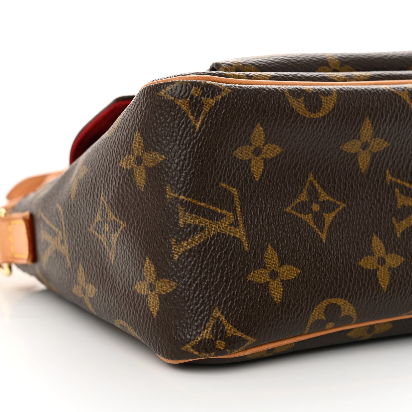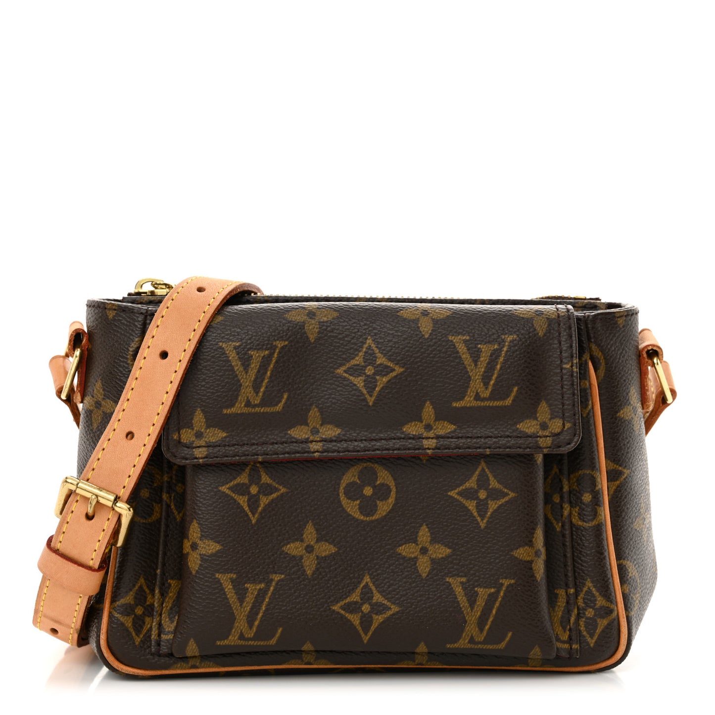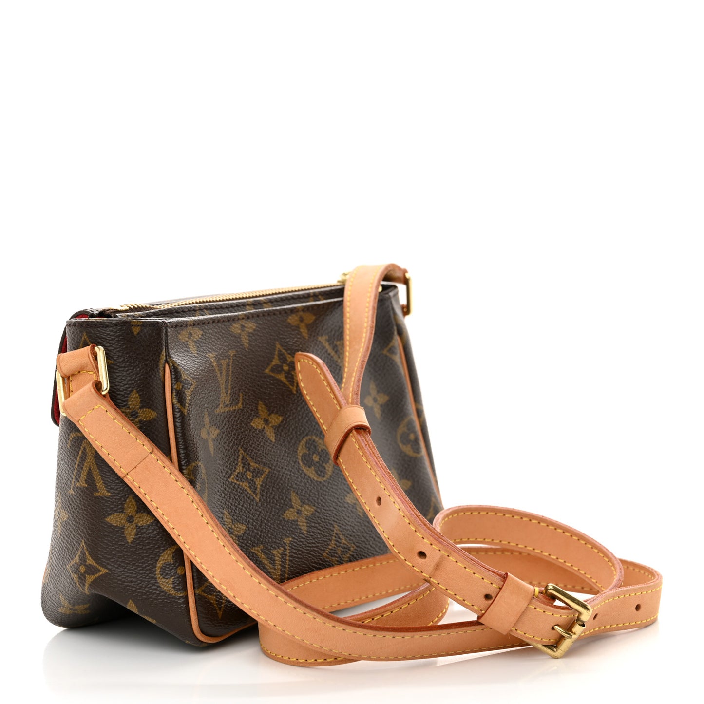 This is an authentic LOUIS VUITTON Monogram Viva-Cite PM. This petite and stylish crossbody bag is finely crafted of Louis Vuitton monogram coated canvas. This shoulder bag features a front flap pocket, an adjustable vachetta cowhide leather shoulder strap, and opens with a brass top zipper to a red microfiber interior.Follow this item for alerts. Louis Vuitton is a registered trademark of Louis Vuitton. FASHIONPHILE is not affiliated with Louis Vuitton.