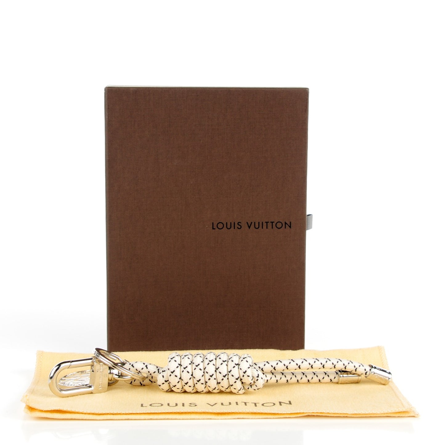 This is an authentic LOUIS VUITTON Palladium Christopher Nemeth Rope Bag Charm Key Ring. This stylish key ring features a knotted white and blue rope with silver key ring and clasp. This is a perfect accessory for your keys from Louis Vuitton!Follow this item for alerts. Louis Vuitton is a registered trademark of Louis Vuitton. FASHIONPHILE is not affiliated with Louis Vuitton.