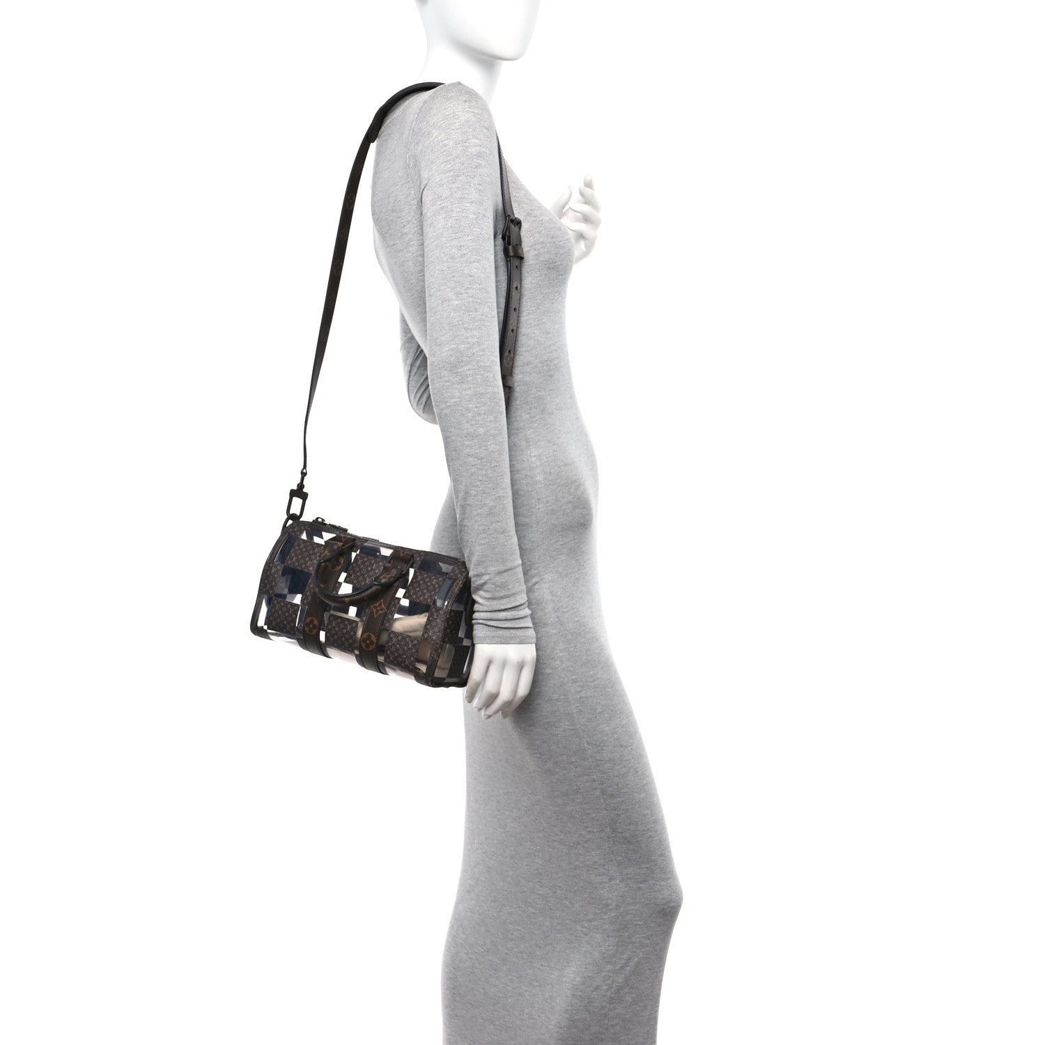 This is an authentic LOUIS VUITTON PVC Monogram Chess Keepall Bandouliere 25. This stylish tote is crafted of clear PVC and squares of Monogram canvas. The shoulder bag features a monogram canvas shoulder strap with matte brown chain links and matching hardware. The top zipper opens to a PVC interior.Follow this item for alerts. Louis Vuitton is a registered trademark of Louis Vuitton. FASHIONPHILE is not affiliated with Louis Vuitton.