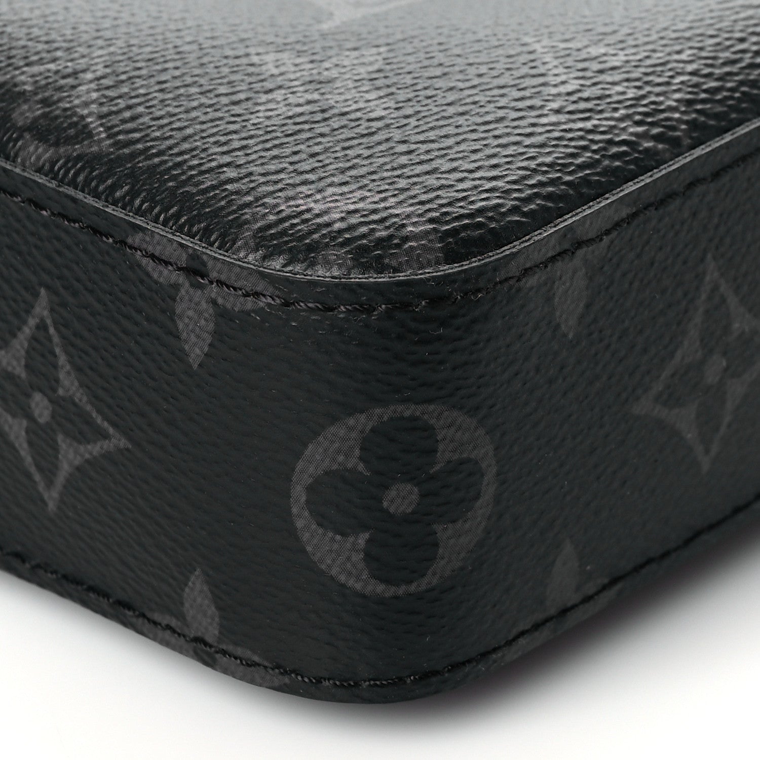 This is an authentic LOUIS VUITTON Reverse Monogram Eclipse Trio Messenger. This chic messenger-style bag is crafted of Louis Vuitton's eclipse monogram coated canvas. The set features a removable pochette, an adjustable black jacquard fabric shoulder strap with dark silver hardware, and a removable coin purse.Follow this item for alerts. Louis Vuitton is a registered trademark of Louis Vuitton. FASHIONPHILE is not affiliated with Louis Vuitton.