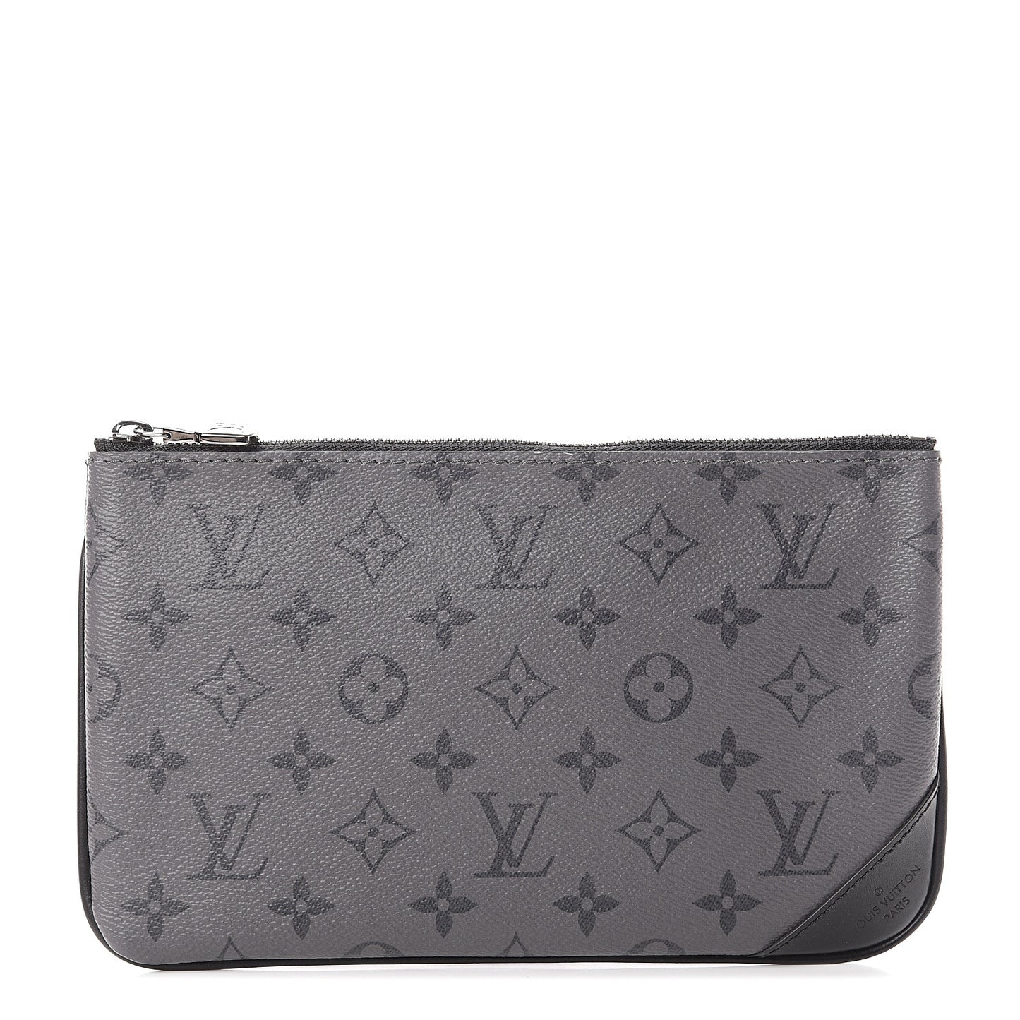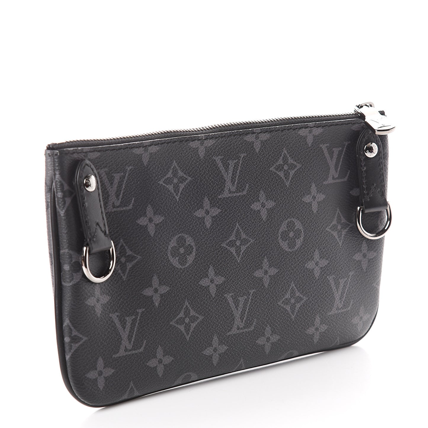 This is an authentic LOUIS VUITTON Reverse Eclipse Monogram Trio Messenger Small Pochette. This chic pouch is crafted in coated canvas in grey. The pouches feature silver hardware and opens to a black interior. This is an ideal case for cosmetics and accessories, with the luxury and style of Louis Vuitton!Follow this item for alerts. Louis Vuitton is a registered trademark of Louis Vuitton. FASHIONPHILE is not affiliated with Louis Vuitton.