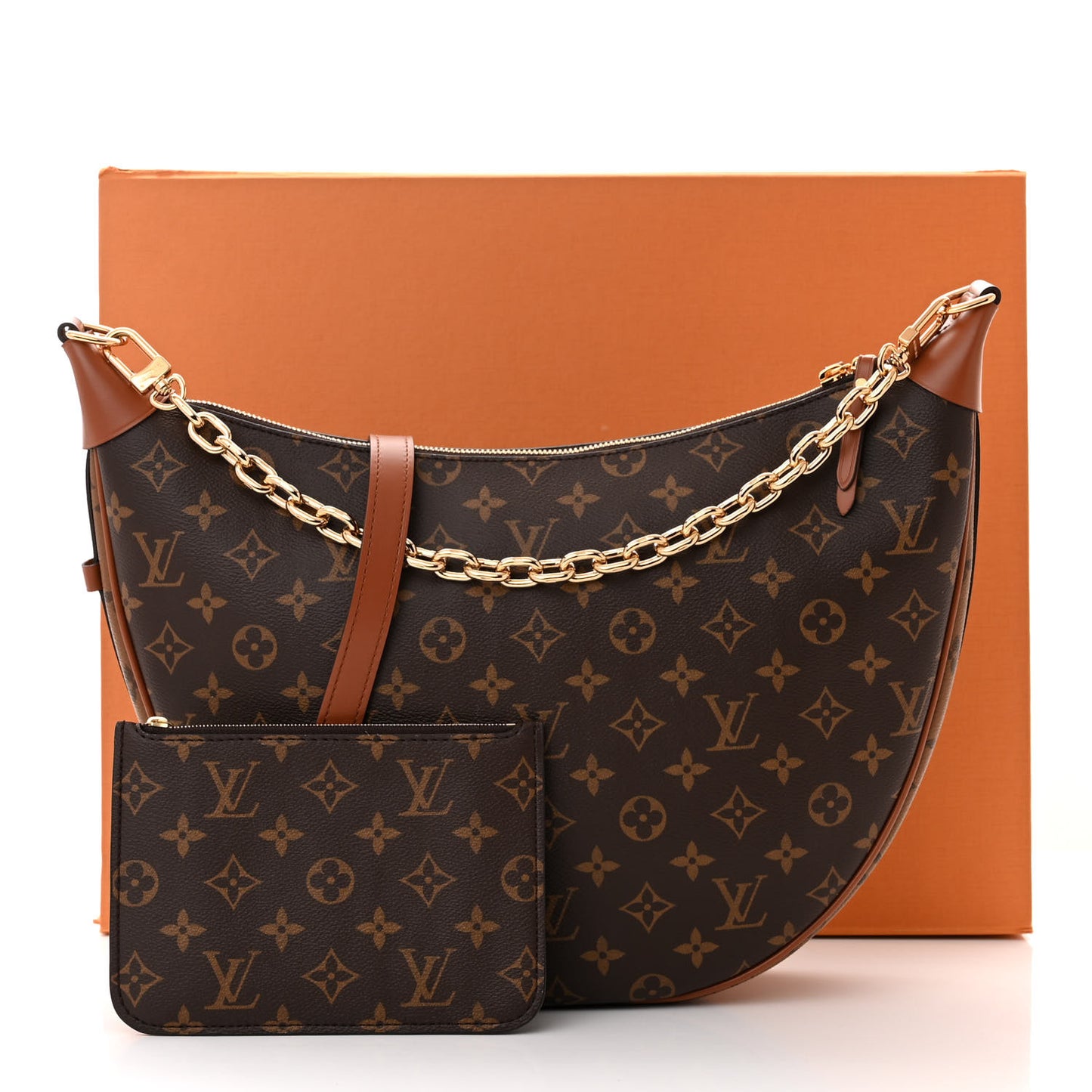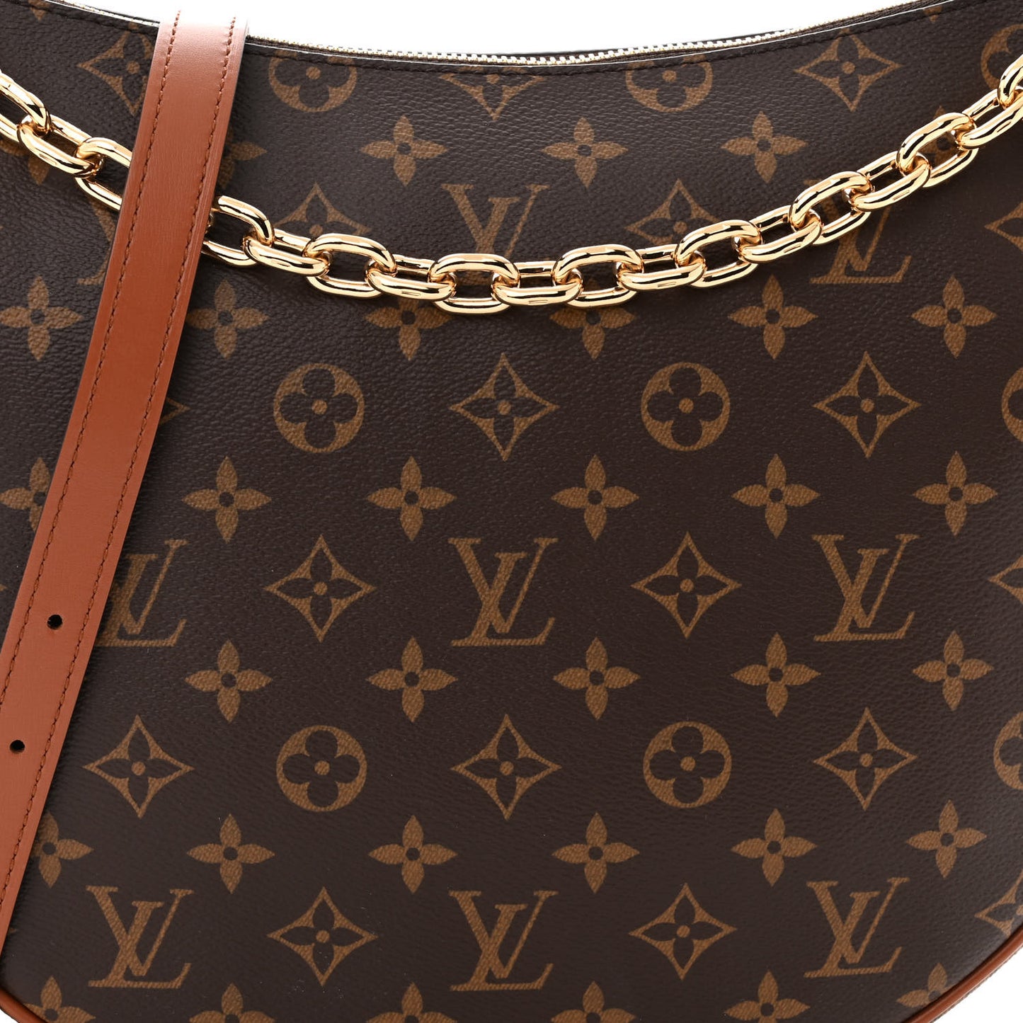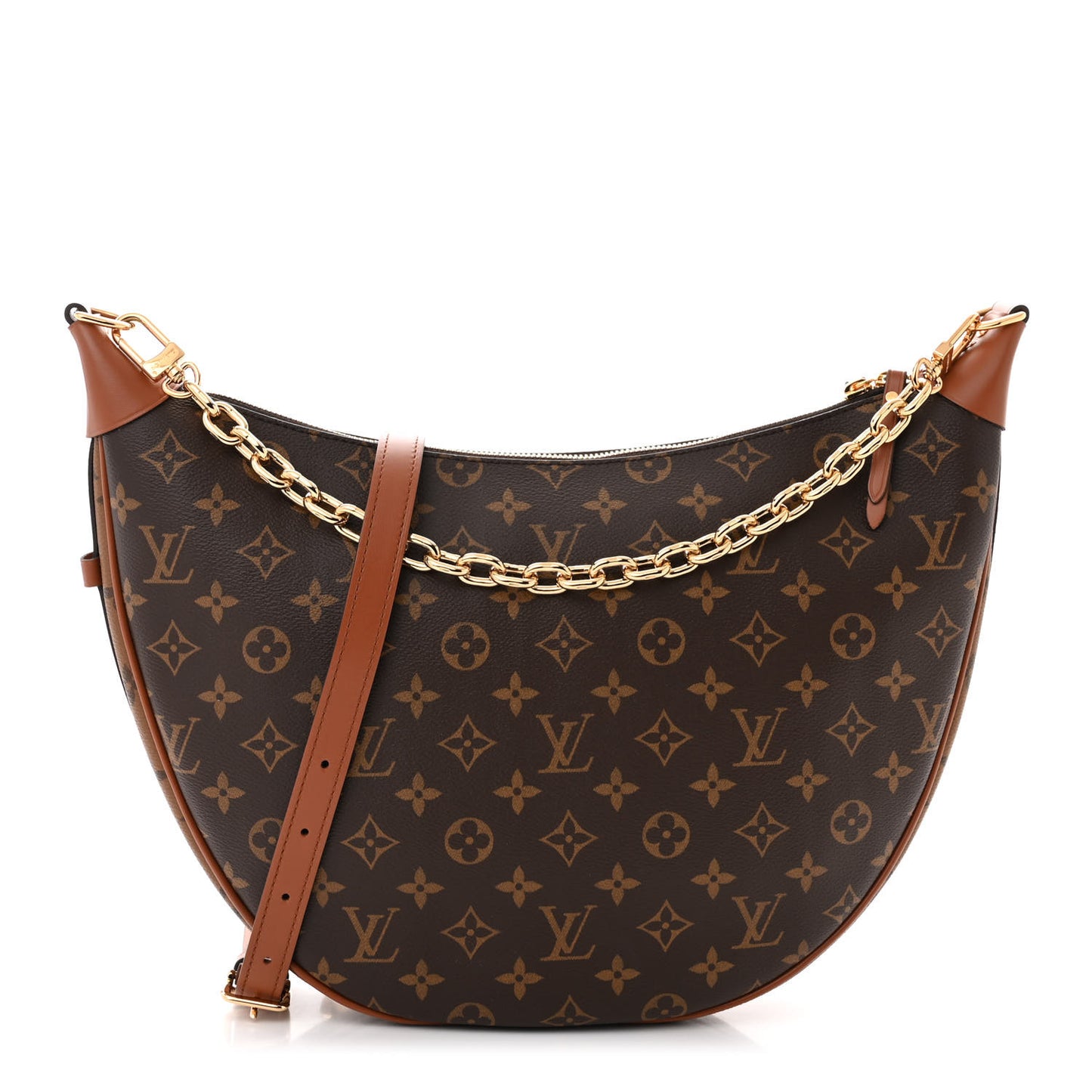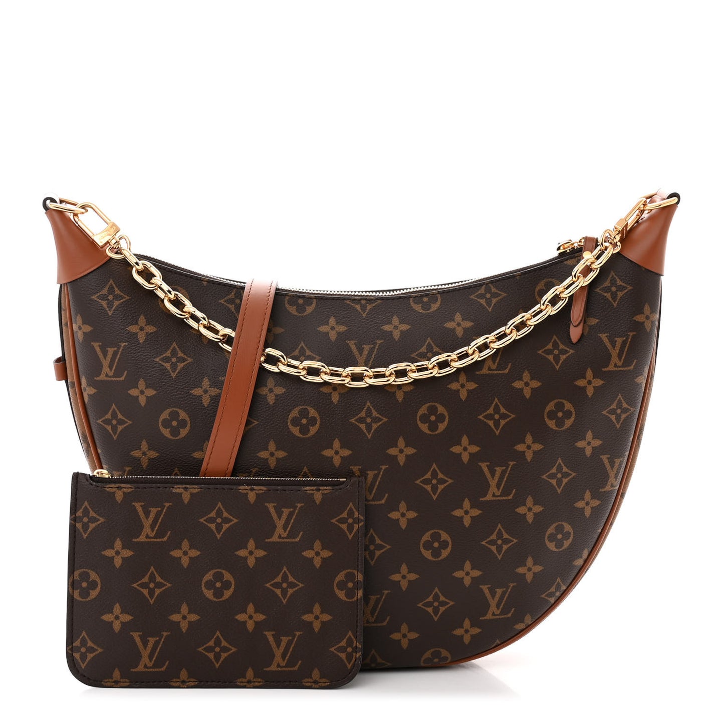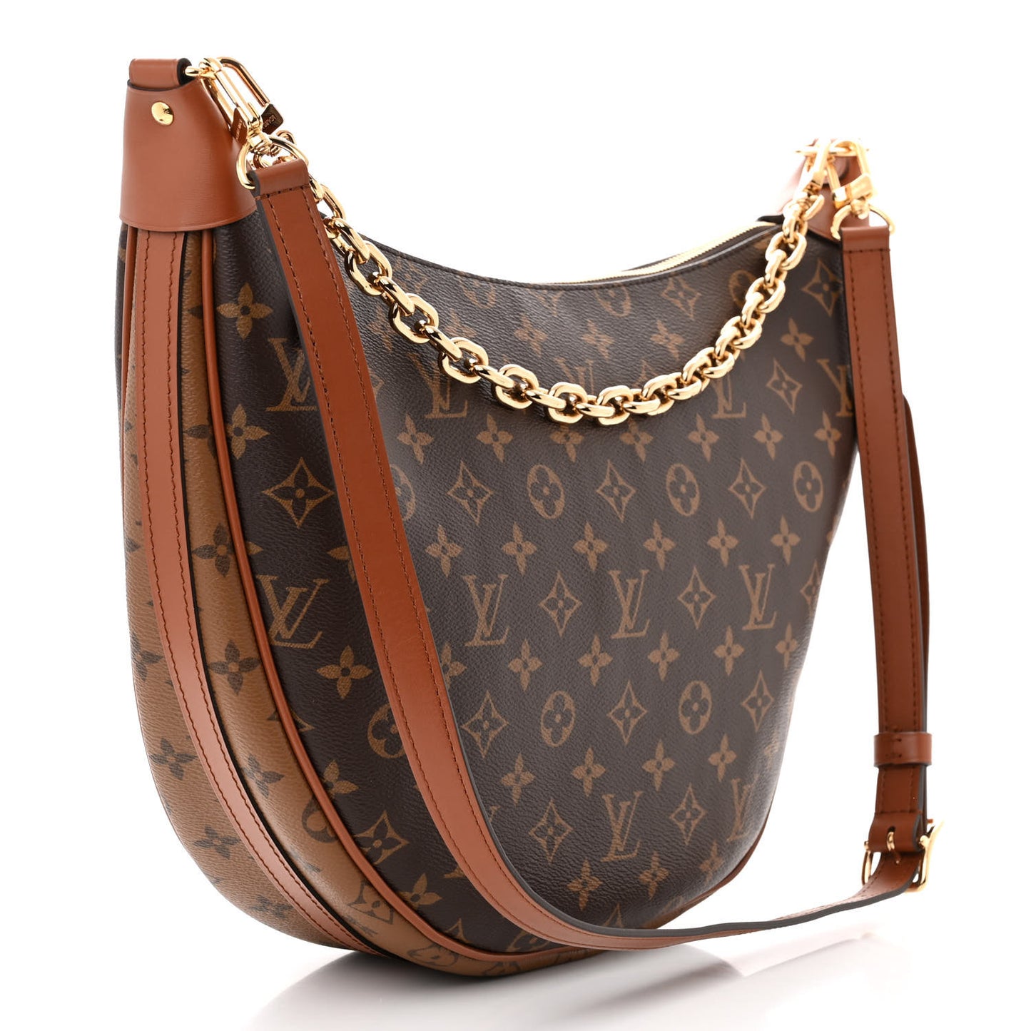 This is an authentic LOUIS VUITTON Reverse Monogram Loop Hobo. This shoulder bag is crafted of Louis Vuitton monogram and reverse monogram coated canvas with brown leather accents. The bag features an adjustable brown leather shoulder strap, a chainlink strap, and a top zipper with brown leather zipper pull. This opens to a brown fabric interior with a matching pochette.Follow this item for alerts. Louis Vuitton is a registered trademark of Louis Vuitton. FASHIONPHILE is not affiliated with Louis Vuitton.