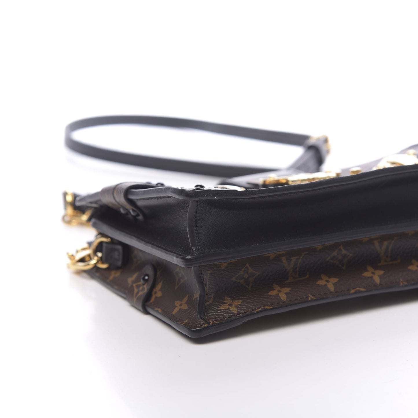 This is an authentic LOUIS VUITTON Reverse Monogram Trunk Clutch. This stylish clutch is crafted of Louis Vuitton Monogram and Reverse Monogram on coated canvas with black smooth calfskin leather trim. This bag features a removable crossbody shoulder strap, brass hardware, fold-over strap with Louis Vuitton stamped S-lock closure, and faux trunk latches. This bag opens to a partitioned leather interior with a patch pocket. This stunning shoulder bag is perfect for daytime or evening essentials with the luxury and style of Louis Vuitton!Follow this item for alerts. Louis Vuitton is a registered trademark of Louis Vuitton. FASHIONPHILE is not affiliated with Louis Vuitton.