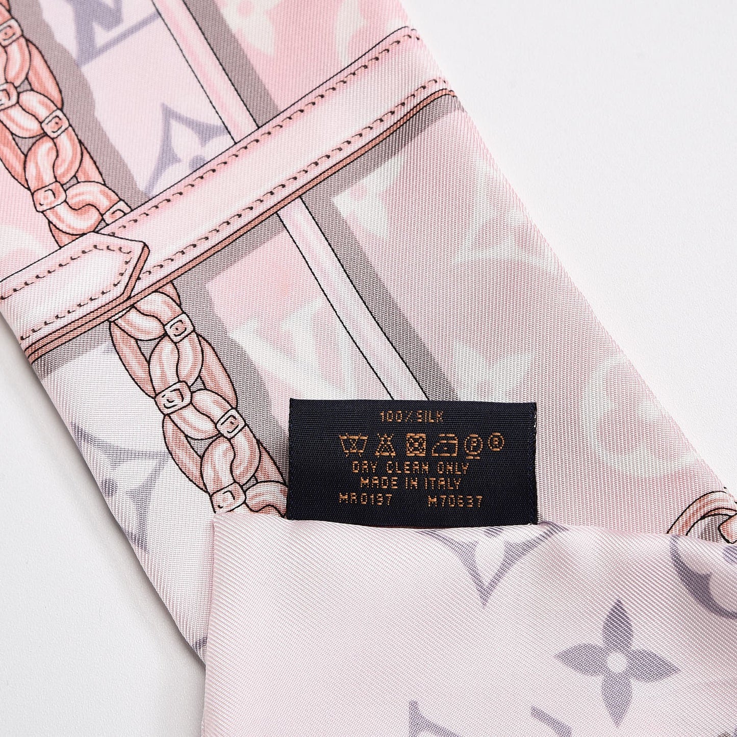 This is an authentic LOUIS VUITTON Silk Monogram Confidential Bandeau in light pink. This very chic 100% silk scarf features an attractive design of the Louis Vuitton monogram and reverse monogram printed with classic vachetta clochettes and chains. This is an excellent scarf with a one of a kind look from Louis Vuitton!Follow this item for alerts. Louis Vuitton is a registered trademark of Louis Vuitton. FASHIONPHILE is not affiliated with Louis Vuitton.