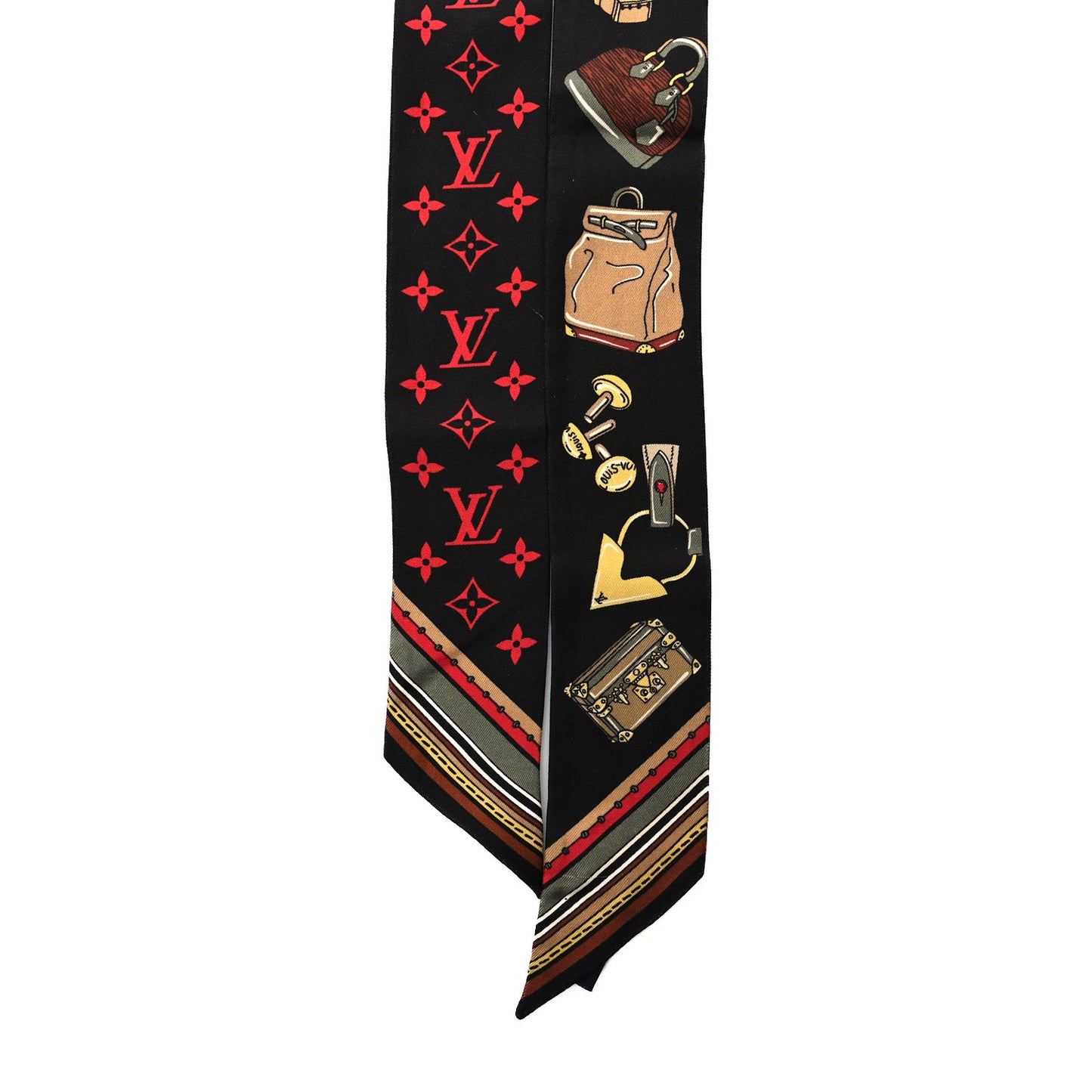 This is an authentic LOUIS VUITTON Silk Monogram Essentials LV BB Bandeau in Black. This is a chic and fabulous silk bandeau scarf that features a playful print on a black background with a red LV monogram print on the reverse.