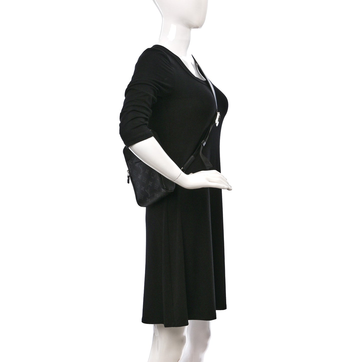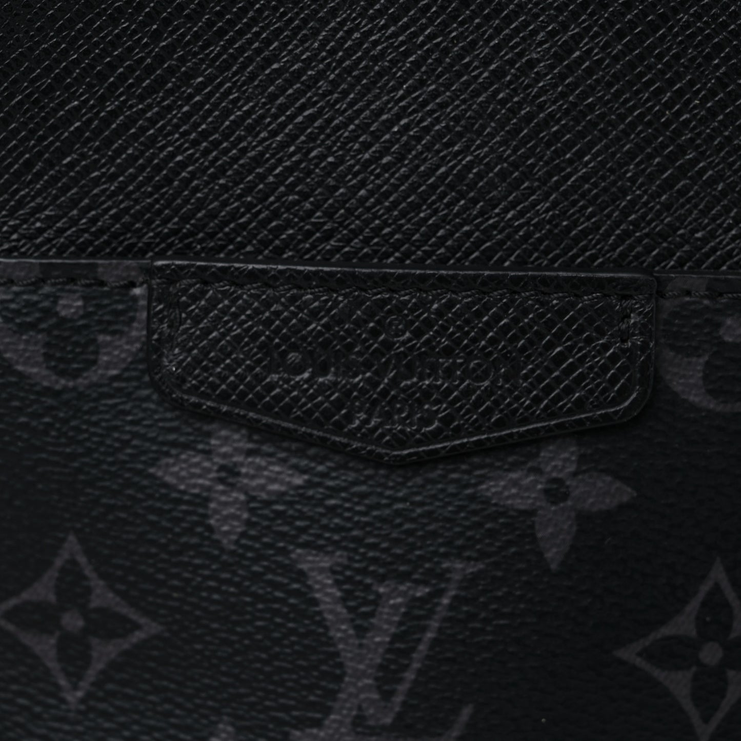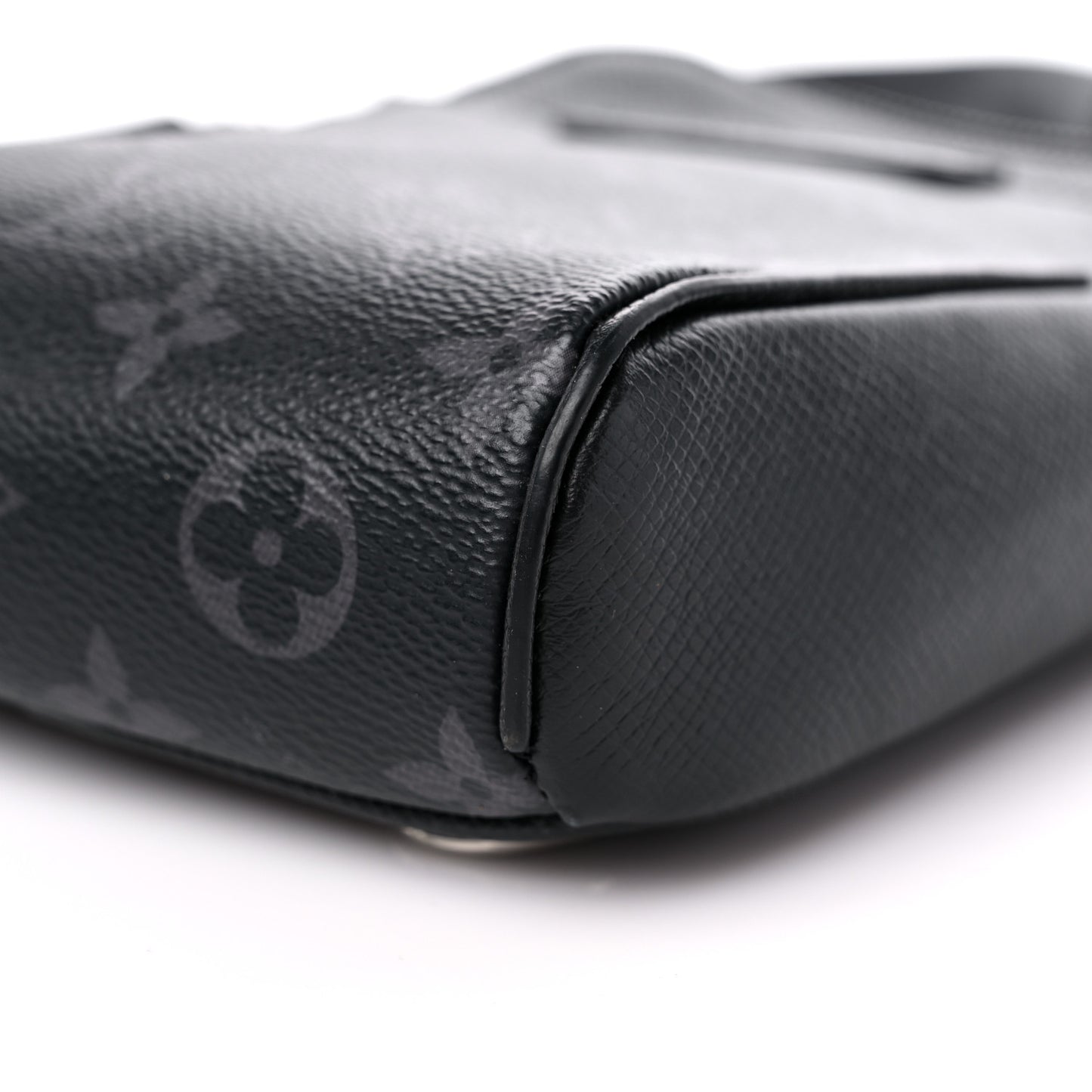 This is an authentic LOUIS VUITTON Taigarama Outdoor Slingbag in Black. This stylish backpack is crafted of black monogram leather. The bag features a front pocket, and an adjustable black nylon and leather backpack strap. The silver wrap-around zippers open to a black fabric interior with a patch pocket.