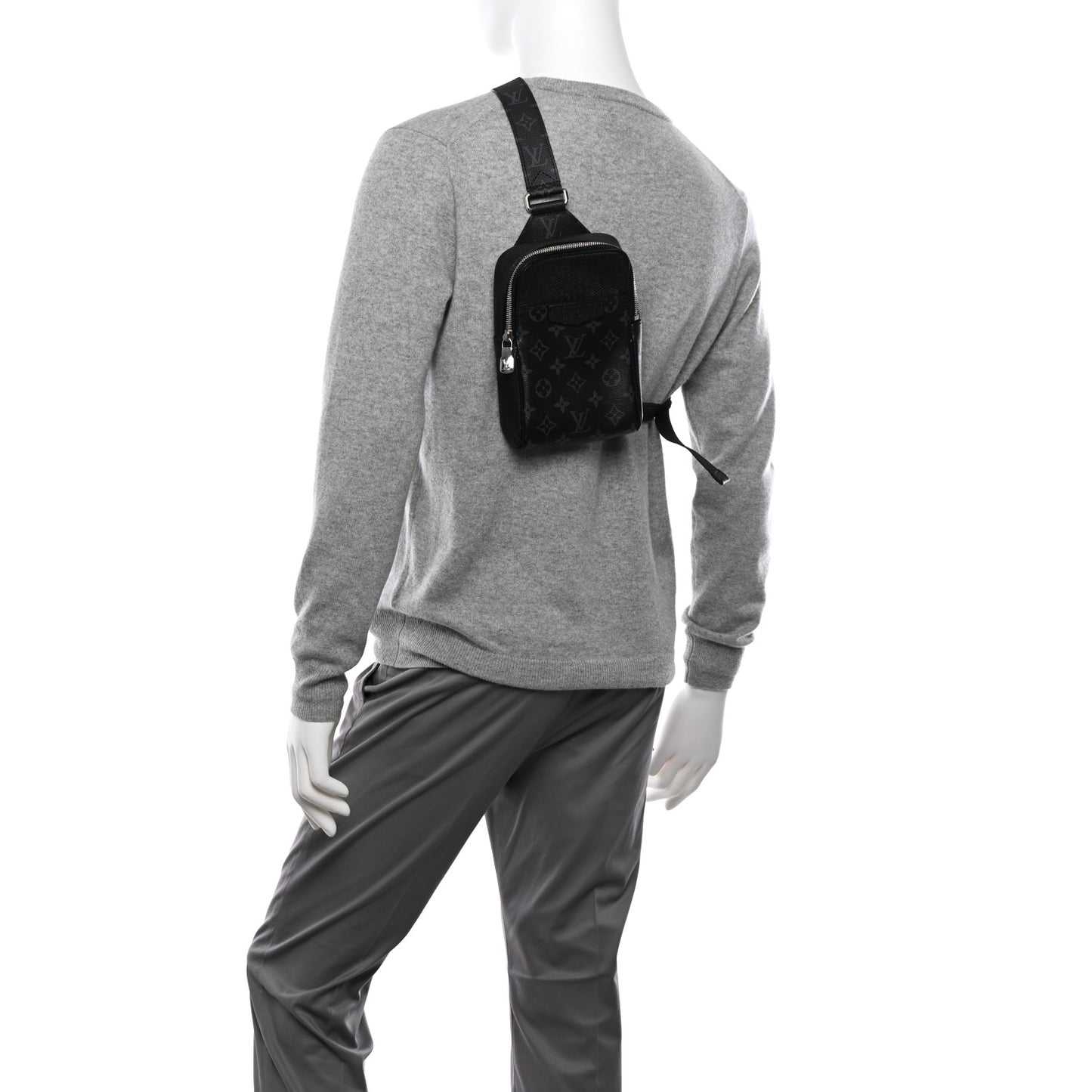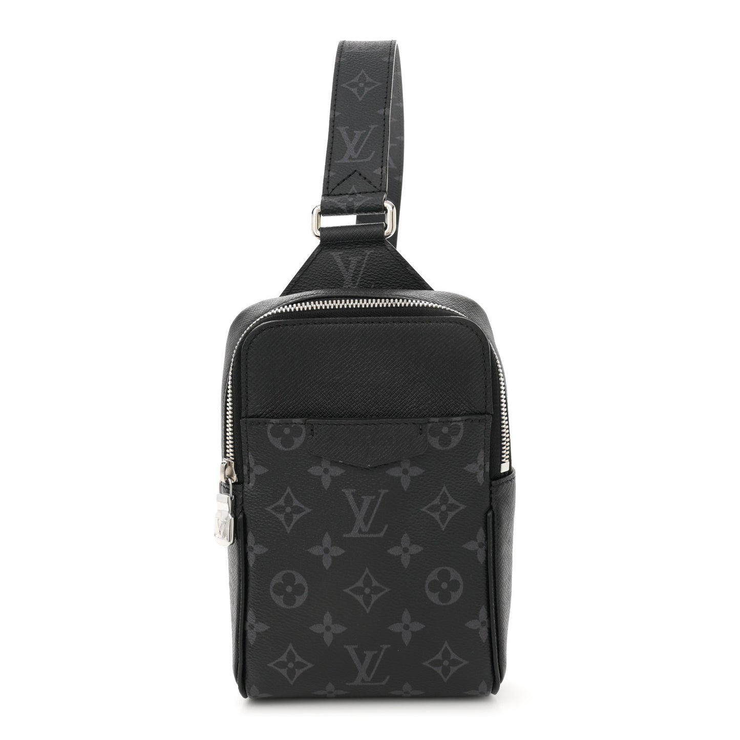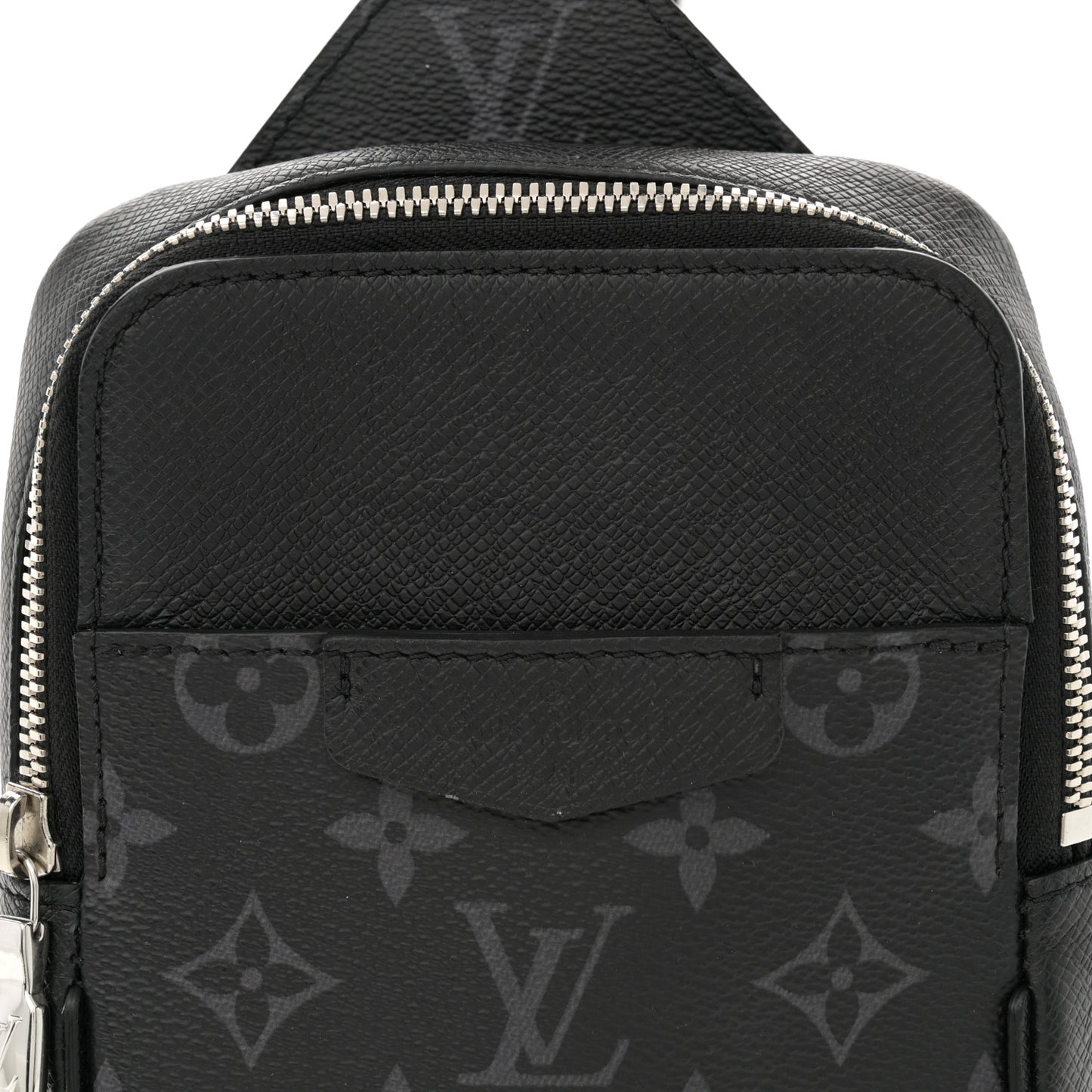 This is an authentic LOUIS VUITTON Taigarama Outdoor Slingbag in Black. This stylish backpack is crafted of black taiga leather with black and grey monogram coated canvas. The bag features a front pocket, and an adjustable black nylon and coated canvas backpack strap. The silver wrap-around zippers open to a black fabric interior with a patch pocket.Follow this item for alerts. Louis Vuitton is a registered trademark of Louis Vuitton. FASHIONPHILE is not affiliated with Louis Vuitton.