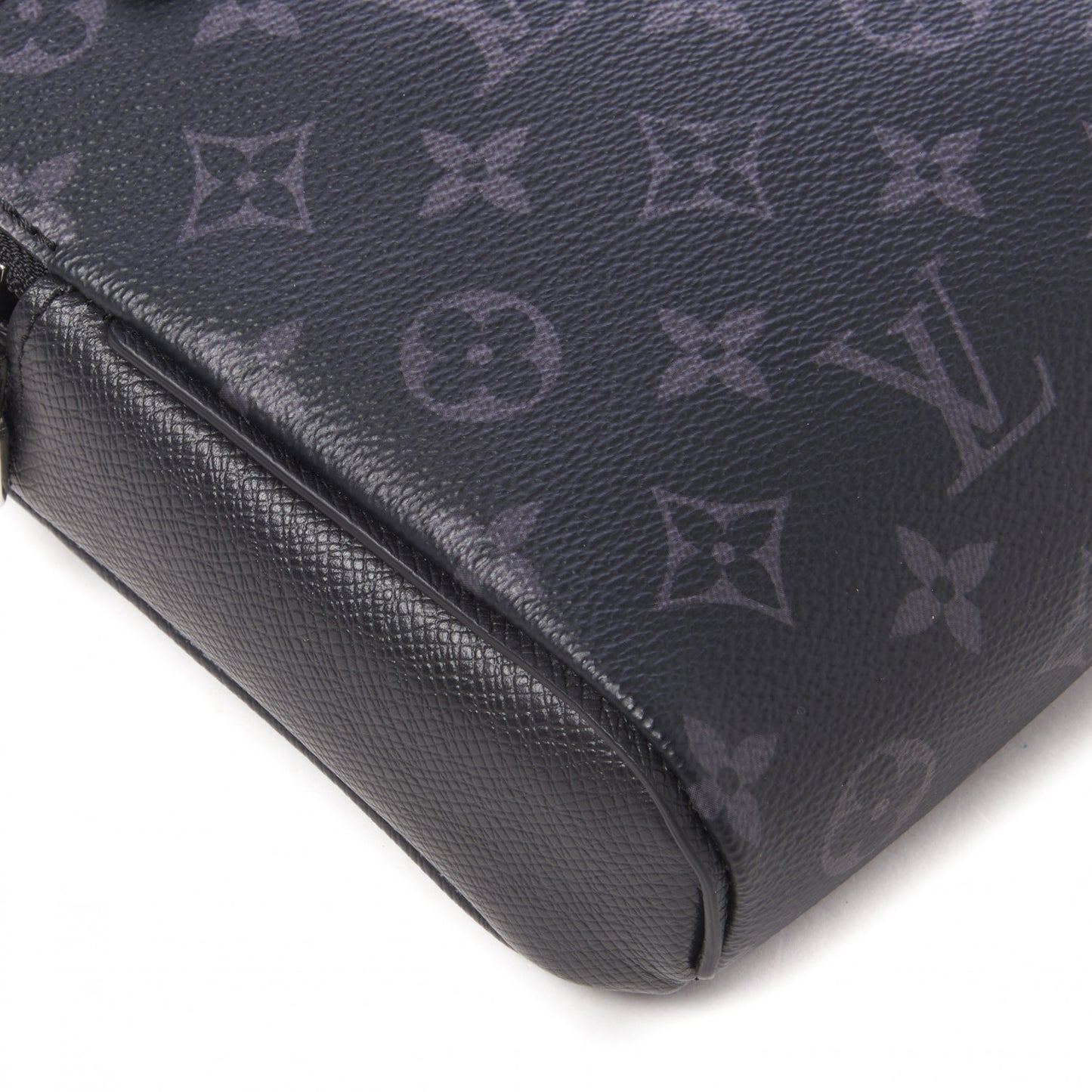 This is an authentic LOUIS VUITTON Taigarama Outdoor Slingbag in Black. This stylish backpack is crafted of black monogram leather. The bag features a front pocket, and an adjustable black nylon and leather backpack strap. The silver wrap-around zippers open to a black fabric interior with a patch pocket.