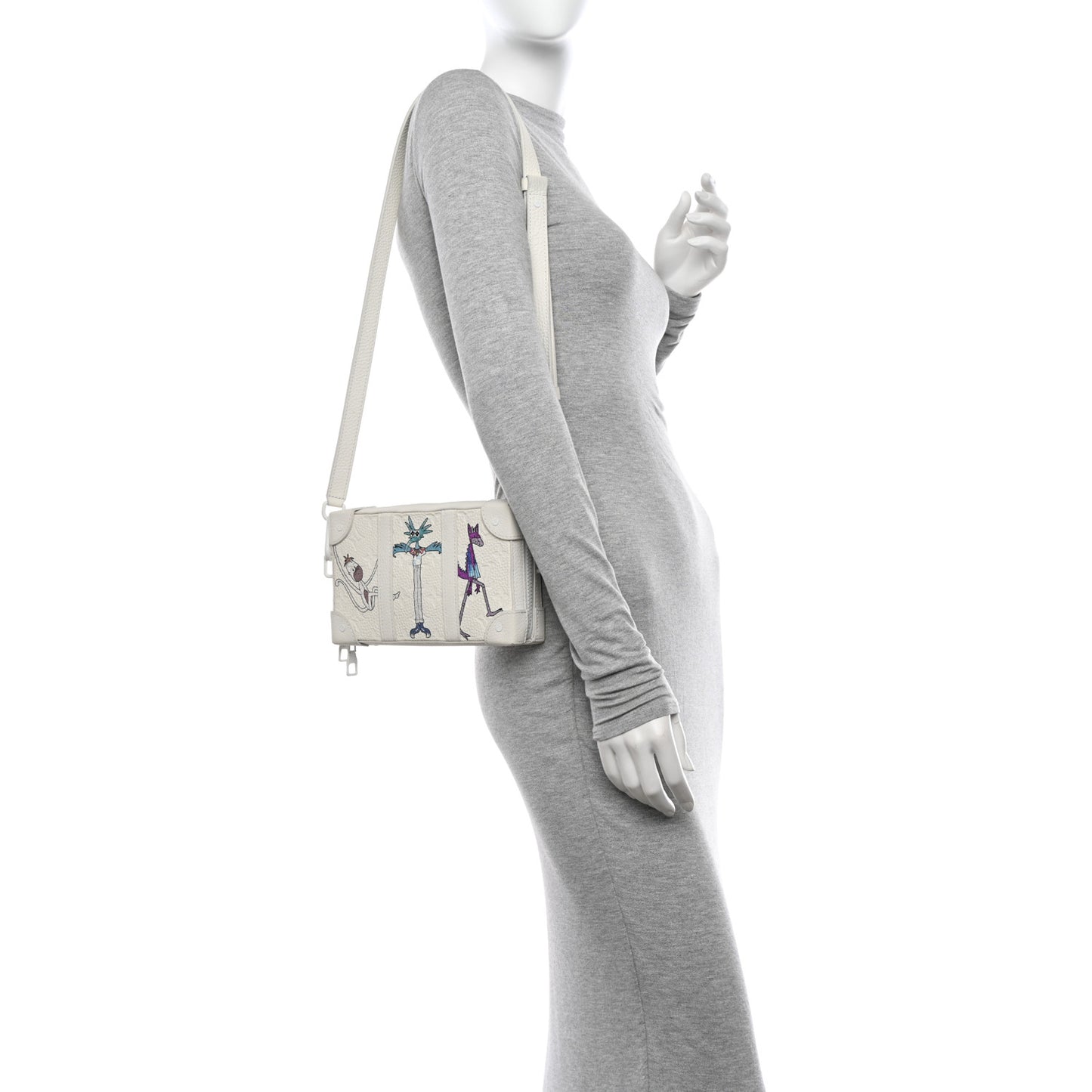 This is an authentic LOUIS VUITTON Taurillon Monogram LV Friends Soft Trunk Wallet in White. This chic shoulder bag is crafted in signature Louis Vuitton monogram canvas in white. The tote features an adjustable shoulder strap and matte white hardware. The top zipper opens to a grey fabric interior with a card slot panel, a patch pocket, and a zipper compartment.Follow this item for alerts. Louis Vuitton is a registered trademark of Louis Vuitton. FASHIONPHILE is not affiliated with Louis Vuitton.
