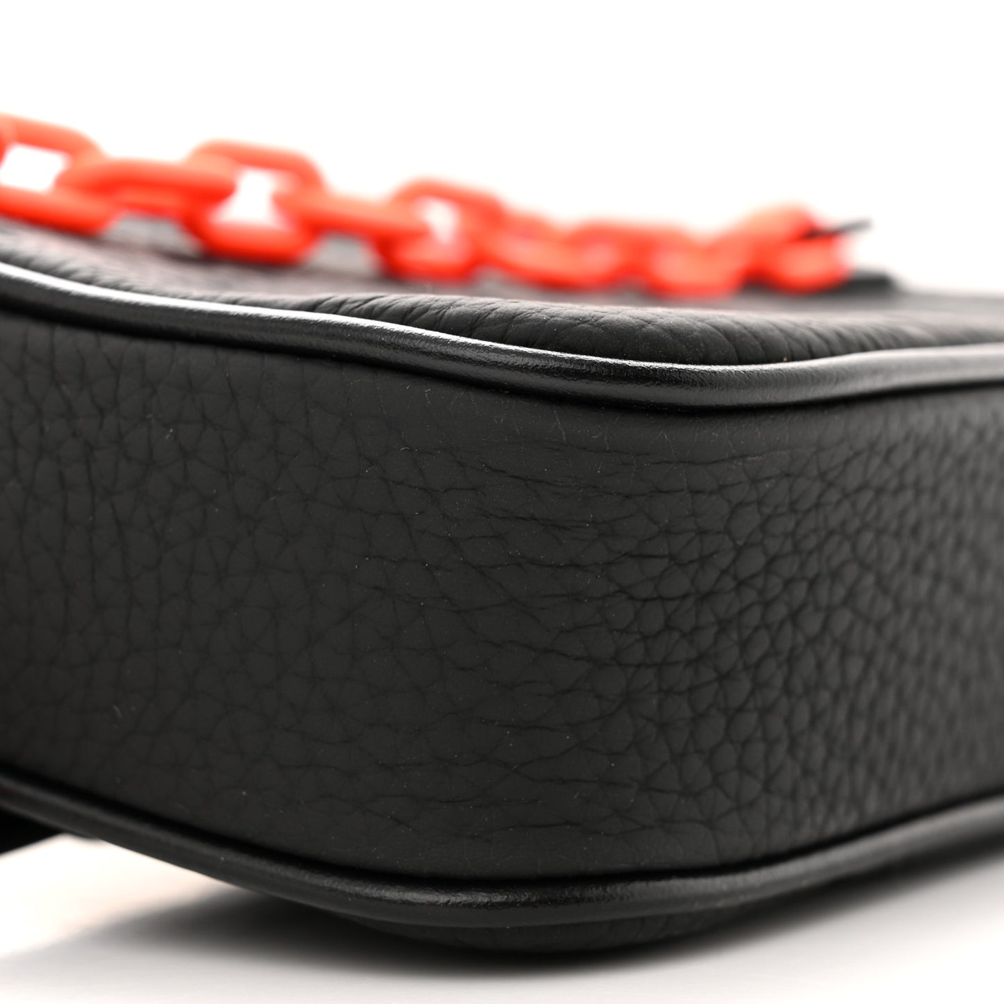 This is an authentic LOUIS VUITTON Taurillon Monogram Uniformes Solar Ray Soft Pochette Volga Belt Bag in Black. This pouch from Virgil Abloh's collection is featured in Louis Vuitton monogram embossed leather in matte black. The pochette features a matte neon orange chain-link strap attached to the zipper, black hardware, and belt strap. The top zipper opens to a black fabric interior.Follow this item for alerts. Louis Vuitton is a registered trademark of Louis Vuitton. FASHIONPHILE is not affiliated with Louis Vuitton.