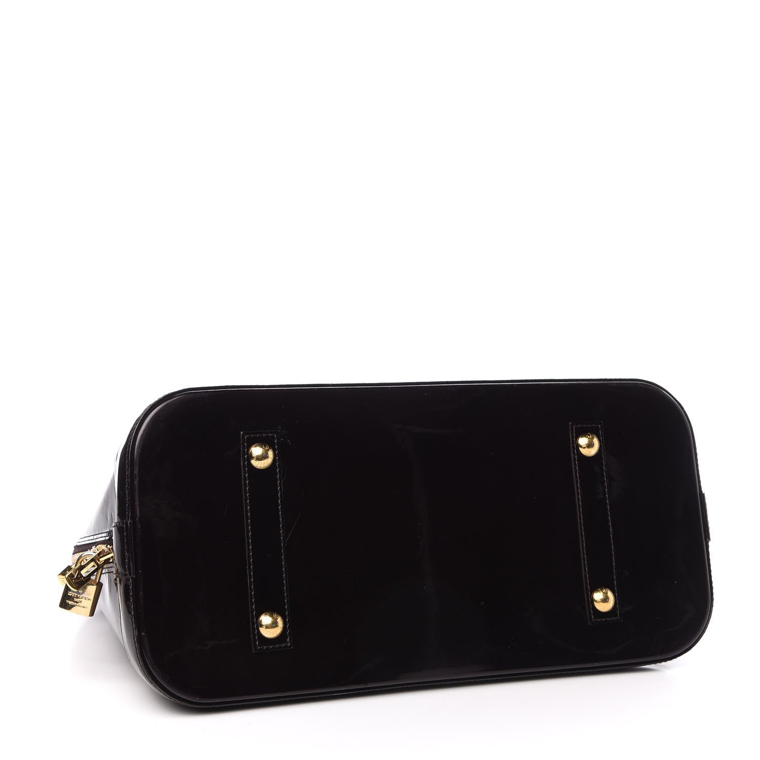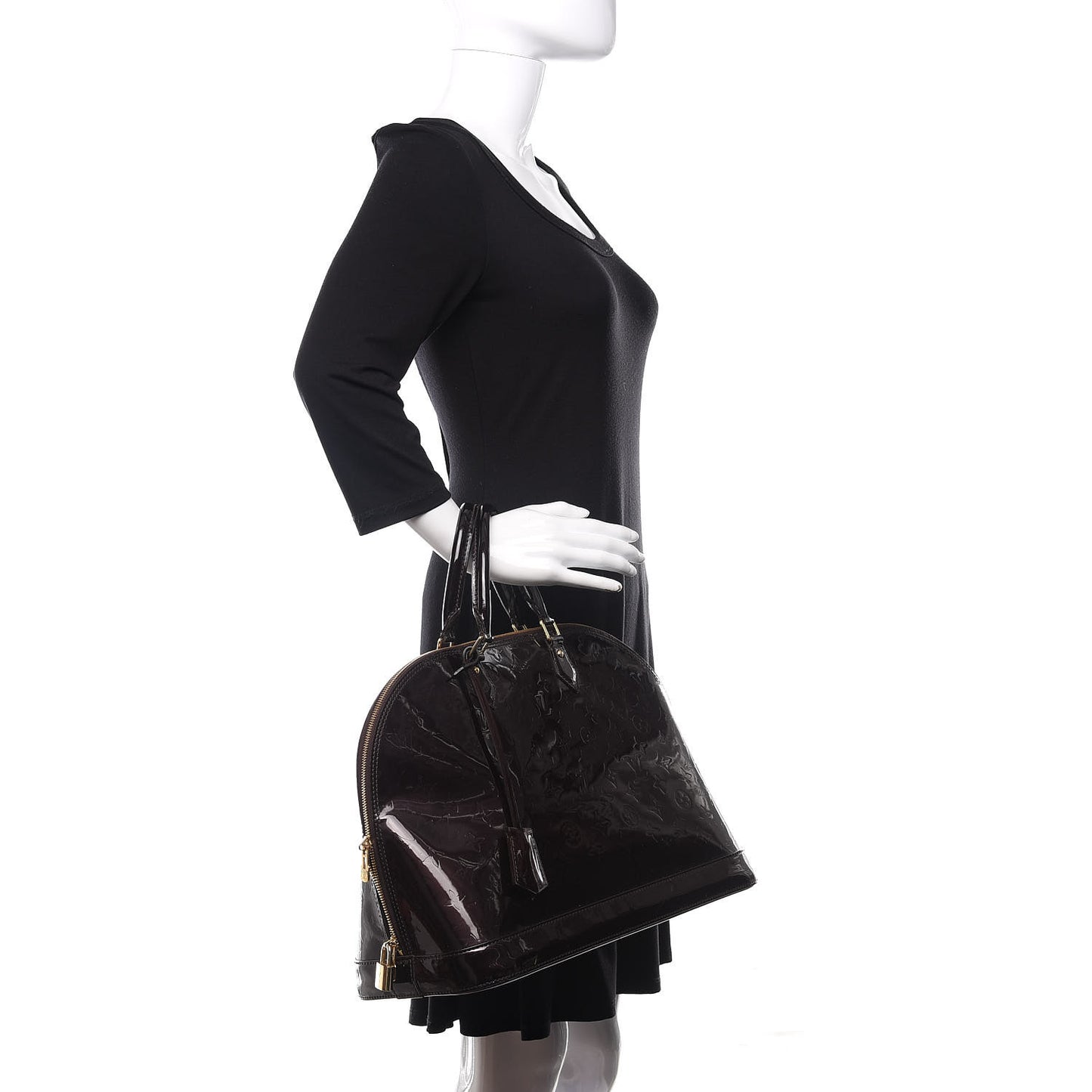 This is an authentic LOUIS VUITTON Vernis Alma GM in Amarante. This distinctively styled Alma is beautifully crafted of shimmery dark purple Louis Vuitton monogram embossed Vernis patent leather. The bag has patent leather rolled top handles and polished gold hardware including a 3/4 double zipper that opens to a matching fabric interior with patch pockets. This chic bag is ideal for everyday use, with the luxury and style of Louis Vuitton!Follow this item for alerts. Louis Vuitton is a registered trademark of Louis Vuitton. FASHIONPHILE is not affiliated with Louis Vuitton.