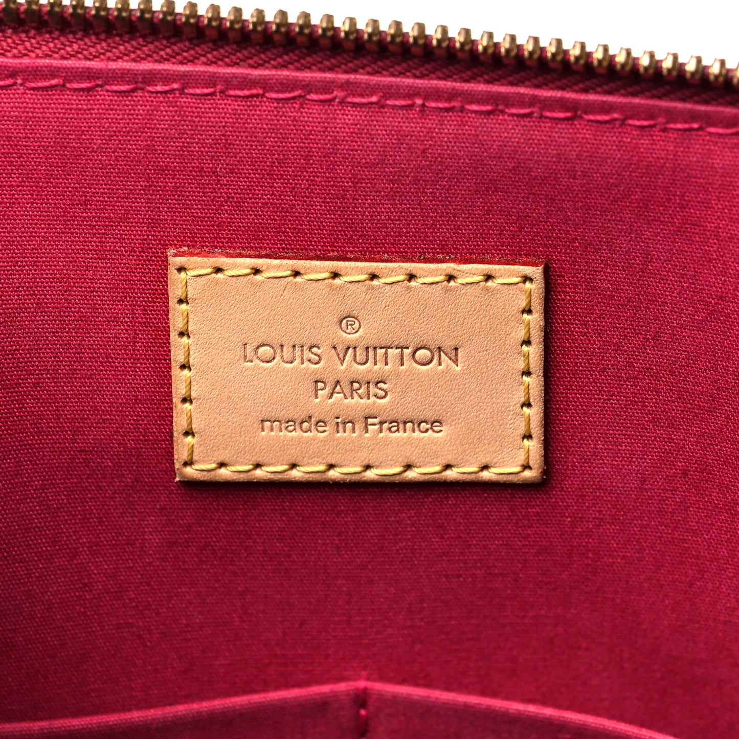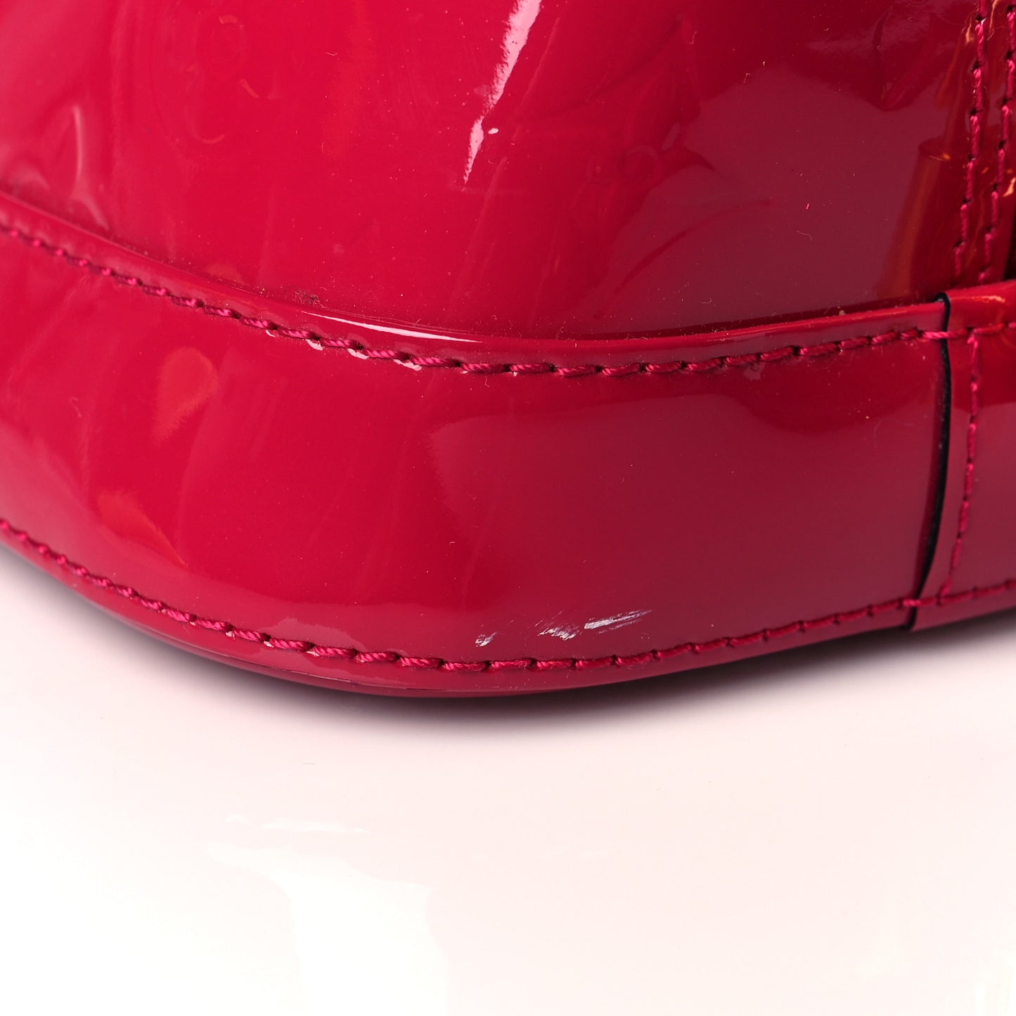 This is an authentic LOUIS VUITTON Vernis Alma PM in Rose Indien. This stunning bowler-style tote is crafted of Louis Vuitton monogram embossed Vernis patent leather in dark pink. It features patent leather rolled top handles, smooth patent leather trim on the base, and bottom trim with gold hardware including zippers.Follow this item for alerts. Louis Vuitton is a registered trademark of Louis Vuitton. FASHIONPHILE is not affiliated with Louis Vuitton.