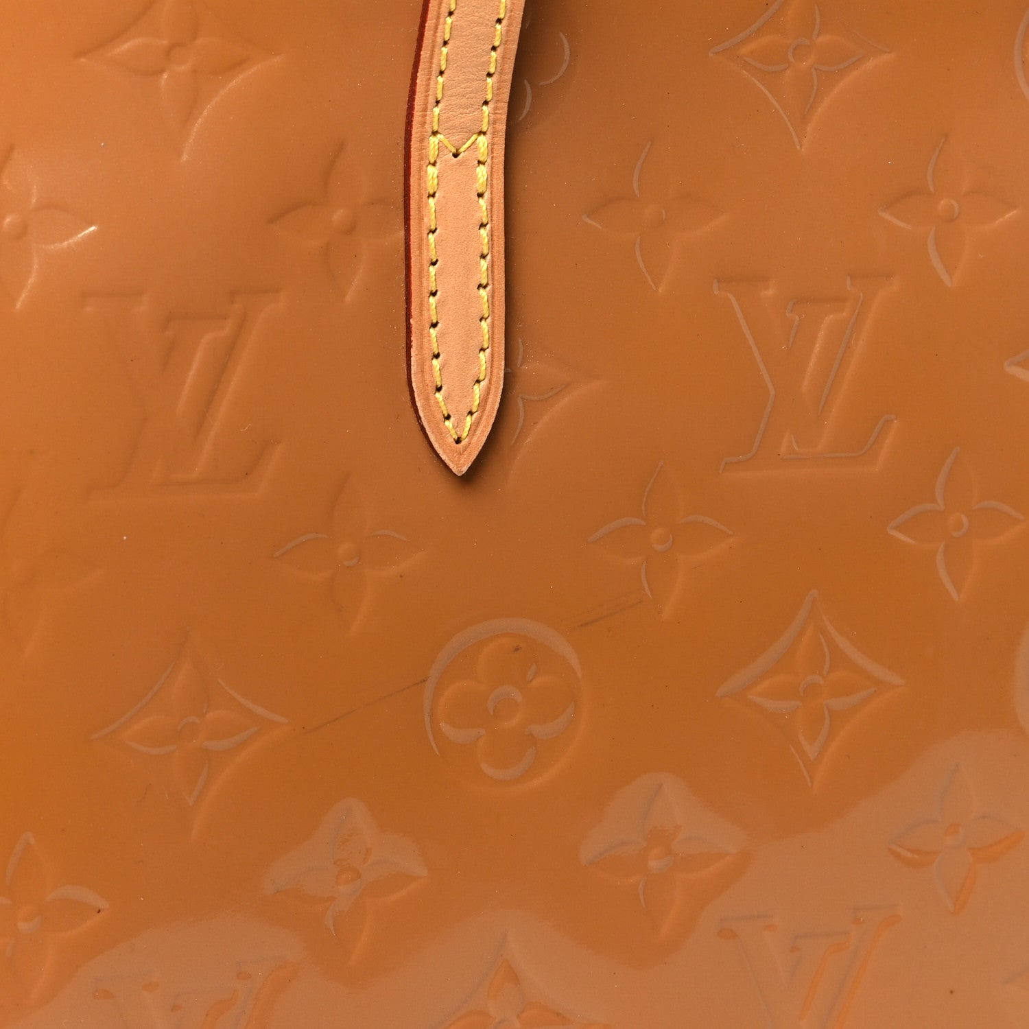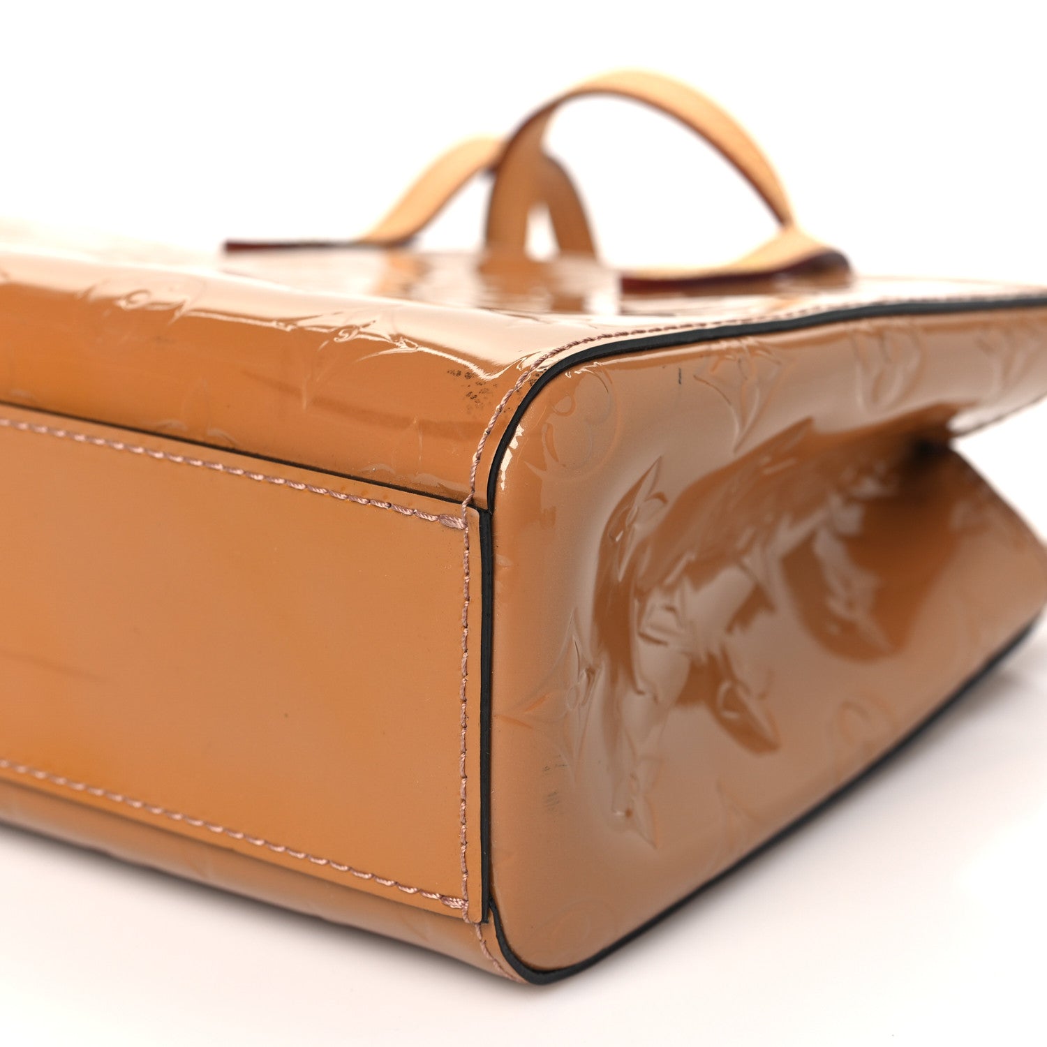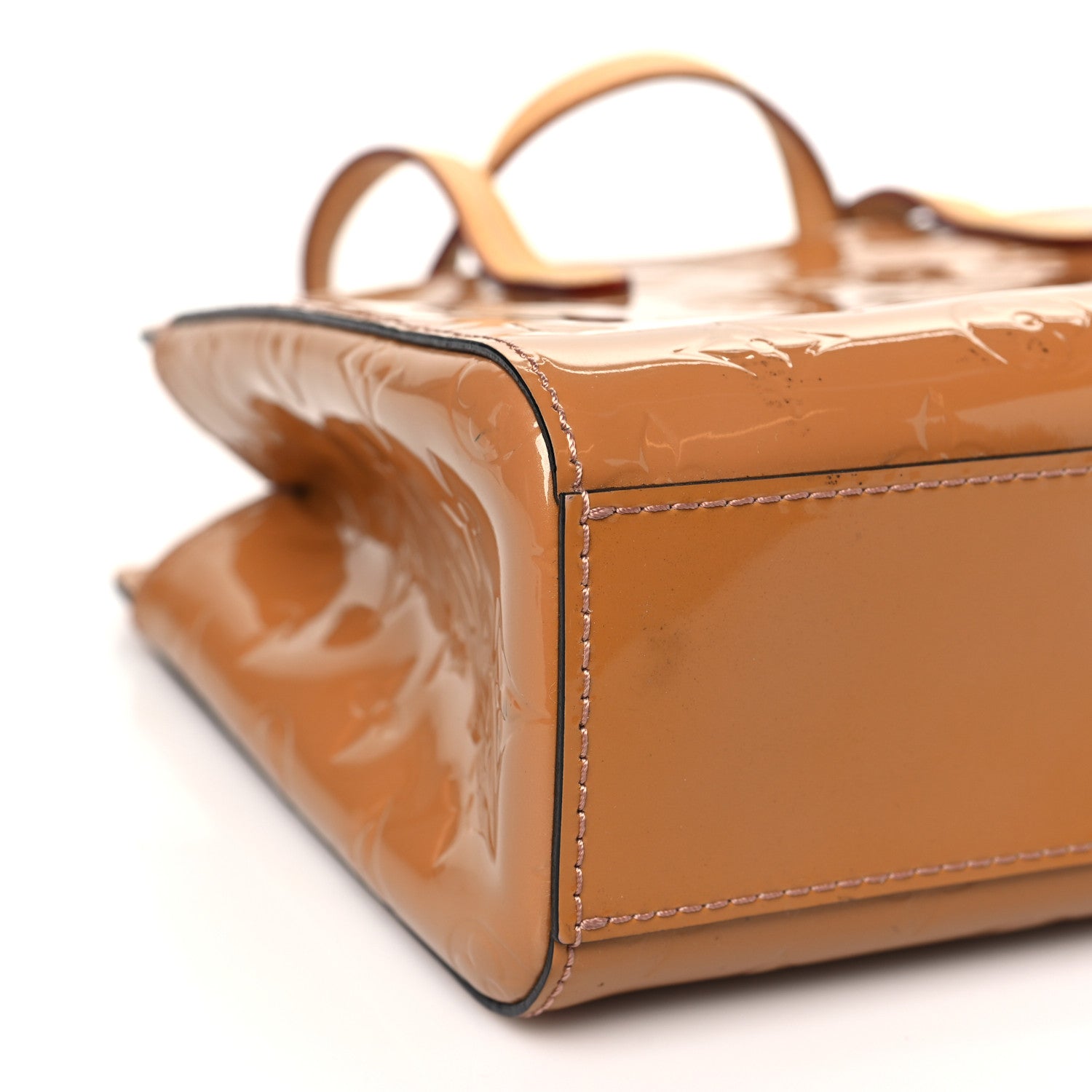 This is an authentic LOUIS VUITTON Vernis Catalina BB in Rose Velours. This chic and compact hand tote is superbly crafted of glossy monogram vernis patent leather in rose beige. The handbag features natural vachetta leather strap handles and a gold closure clasp. The top opens to a durable fabric lining with a zippered pocket. This petite handbag is a stunning look to brighten up most attire, by Louis Vuitton!