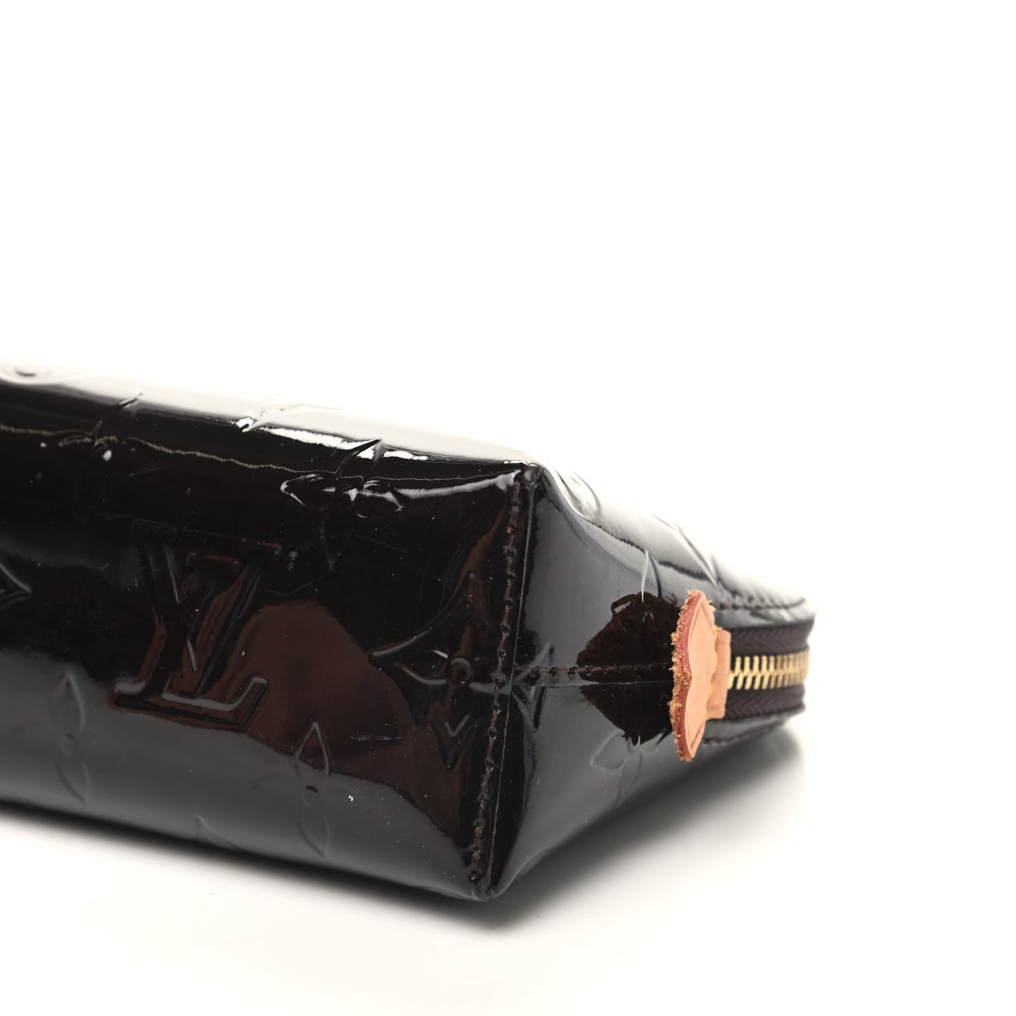 This is an authentic LOUIS VUITTON Vernis Cosmetic Pouch in Amarante. This stylish pochette is crafted of Louis Vuitton monogram vernis patent leather in dark purple. The bag features a wrap around brass zipper that opens to a grained leather interior.Follow this item for alerts. Louis Vuitton is a registered trademark of Louis Vuitton. FASHIONPHILE is not affiliated with Louis Vuitton.