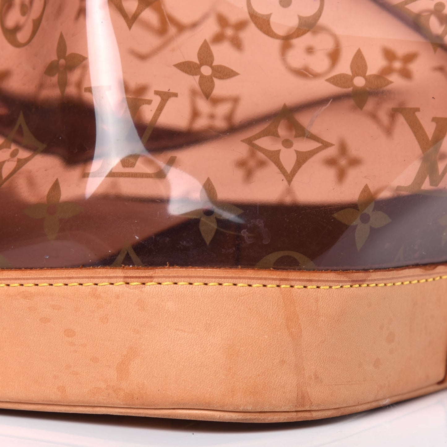 This is an authentic LOUIS VUITTON Vinyl Cabas Sac Ambre GM. This casual tote is crafted of Louis Vuitton monogram vinyl in transparent amber brown. The bag features a vachetta cowhide leather base, trim and a shoulder pad for the tortoise handle links with polished brass hardware. The top is open to a roomy interior.Follow this item for alerts. Louis Vuitton is a registered trademark of Louis Vuitton. FASHIONPHILE is not affiliated with Louis Vuitton.