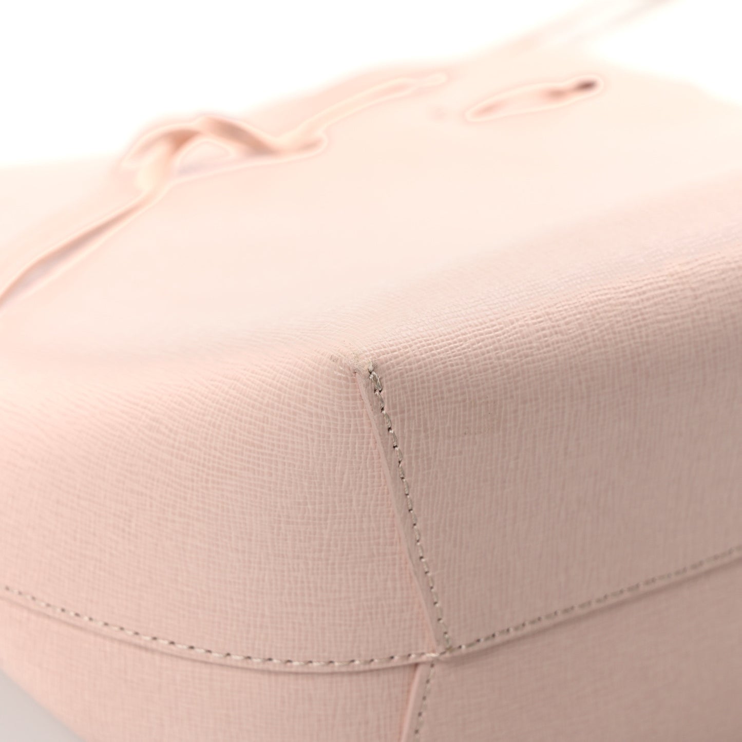 This is an authentic MANSUR GAVRIEL Saffiano Mini Bucket Bag in Rosa. This classic bucket shape is crafted of smooth leather in light pink. The bag features an adjustable shoulder strap, and a drawstring top that opens to a matching leather interior.Follow this item for alerts. Mansur Gavriel is a registered trademark of Mansur Gavriel. FASHIONPHILE is not affiliated with Mansur Gavriel.