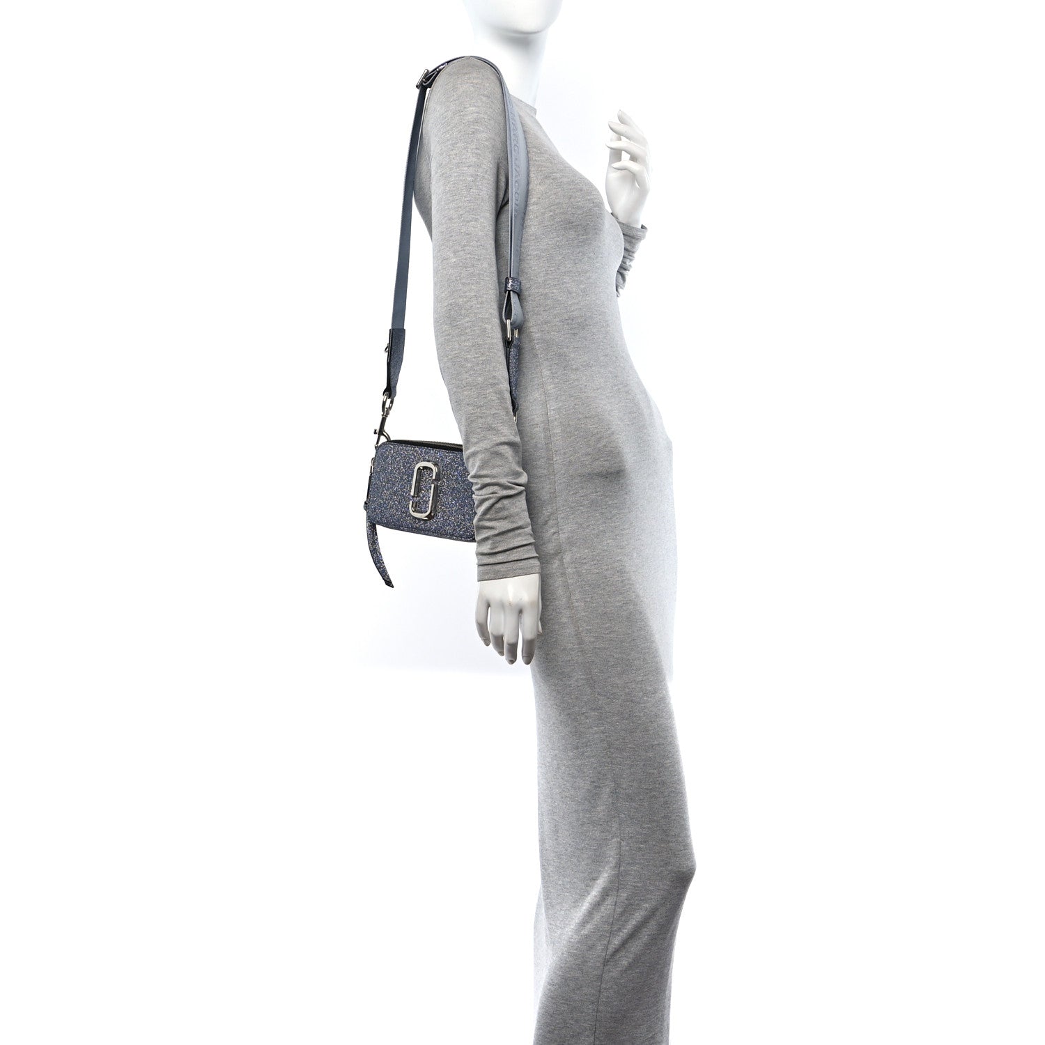 This is an authentic MARC JACOBS Glitter The Galactic Snapshot Camera Bag in Silver. This silver glitter crossbody bag features a logo stitched adjustable canvas shoulder strap and a rear patch pocket. The top zippers open to black fabric interiors with a patch pocket.Follow this item for alerts. Marc Jacobs is a registered trademark of Marc Jacobs. FASHIONPHILE is not affiliated with Marc Jacobs.