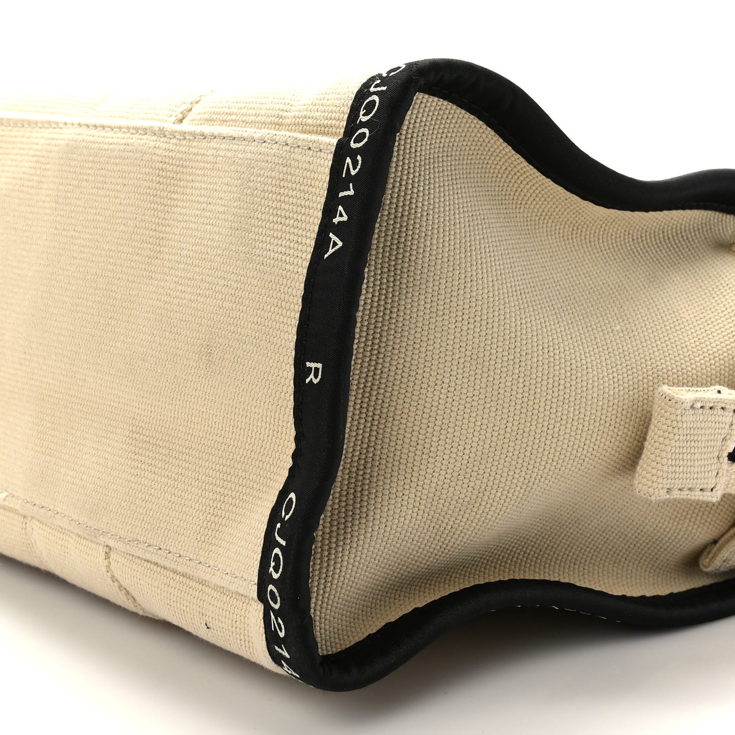 This is an authentic MARC JACOBS Jacquard Large The Traveler Tote Bag in Warm Sand. This chic tote is crafted of beige canvas with black trim and "The Tote Bag, Marc Jacobs" embroidered across the front. The bag features rolled top handles, a side grip strap, and an overextended top zipper that opens to a black fabric interior with zipper and patch pockets.Follow this item for alerts. Marc Jacobs is a registered trademark of Marc Jacobs. FASHIONPHILE is not affiliated with Marc Jacobs.