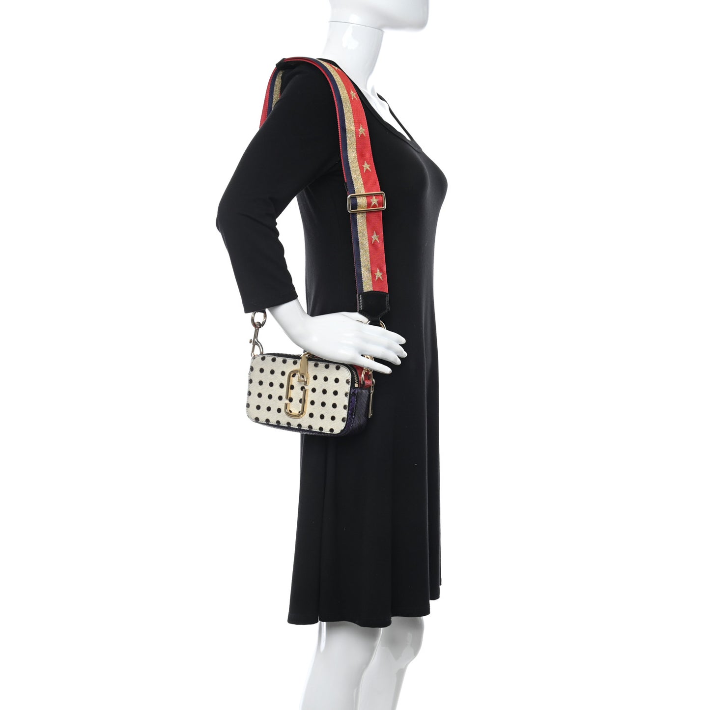 Marc Jacobs/ Bags/ Shoulder Bags /Marc Jacobs Snakeskin Embossed Pony Hair Polka Dot Small Snapshot Camera Bag White Multicolor