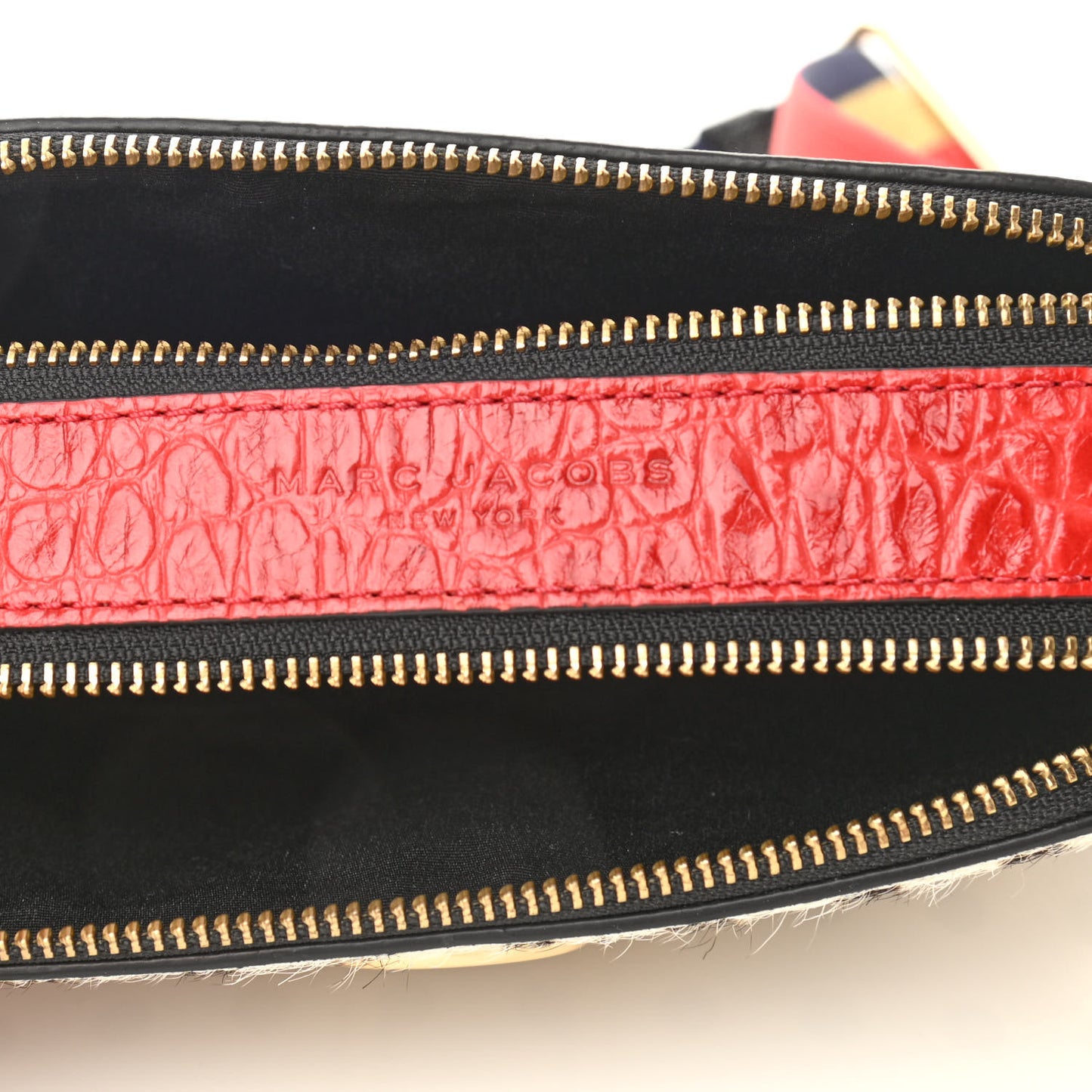 This is an authentic MARC JACOBS Snakeskin Embossed Pony Hair Polka Dot Small Snapshot Camera Bag in White and Multicolor. This professionally styled camera bag is beautifully crafted of multi-colored glazed calfskin leather. The bag features an adjustable fabric shoulder strap and bold gold hardware. The two top zippers open to a black fabric interior with a pocket.Follow this item for alerts. Marc Jacobs is a registered trademark of Marc Jacobs. FASHIONPHILE is not affiliated with Marc Jacobs.