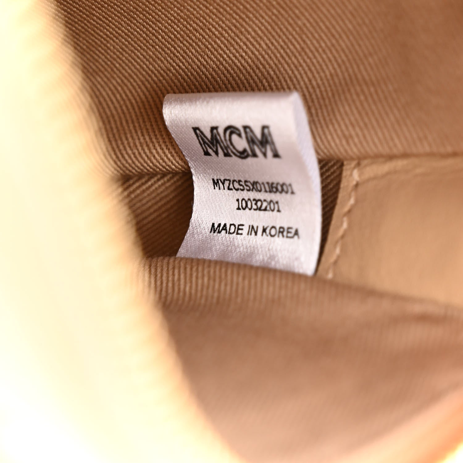 This is an authentic MCM Calfskin Visetos Mini Color Splash Pouch on Chain in Croissant. This chic bag is crafted of MCM's signature visetos calfskin in beige with yellow MCM monogram. The bag features a gold chain handle, an optional leather shoulder strap, a rear pocket, and gold hardware. The top zipper opens to a beige fabric interior.Follow this item for alerts. MCM is a registered trademark of MCM. FASHIONPHILE is not affiliated with MCM.