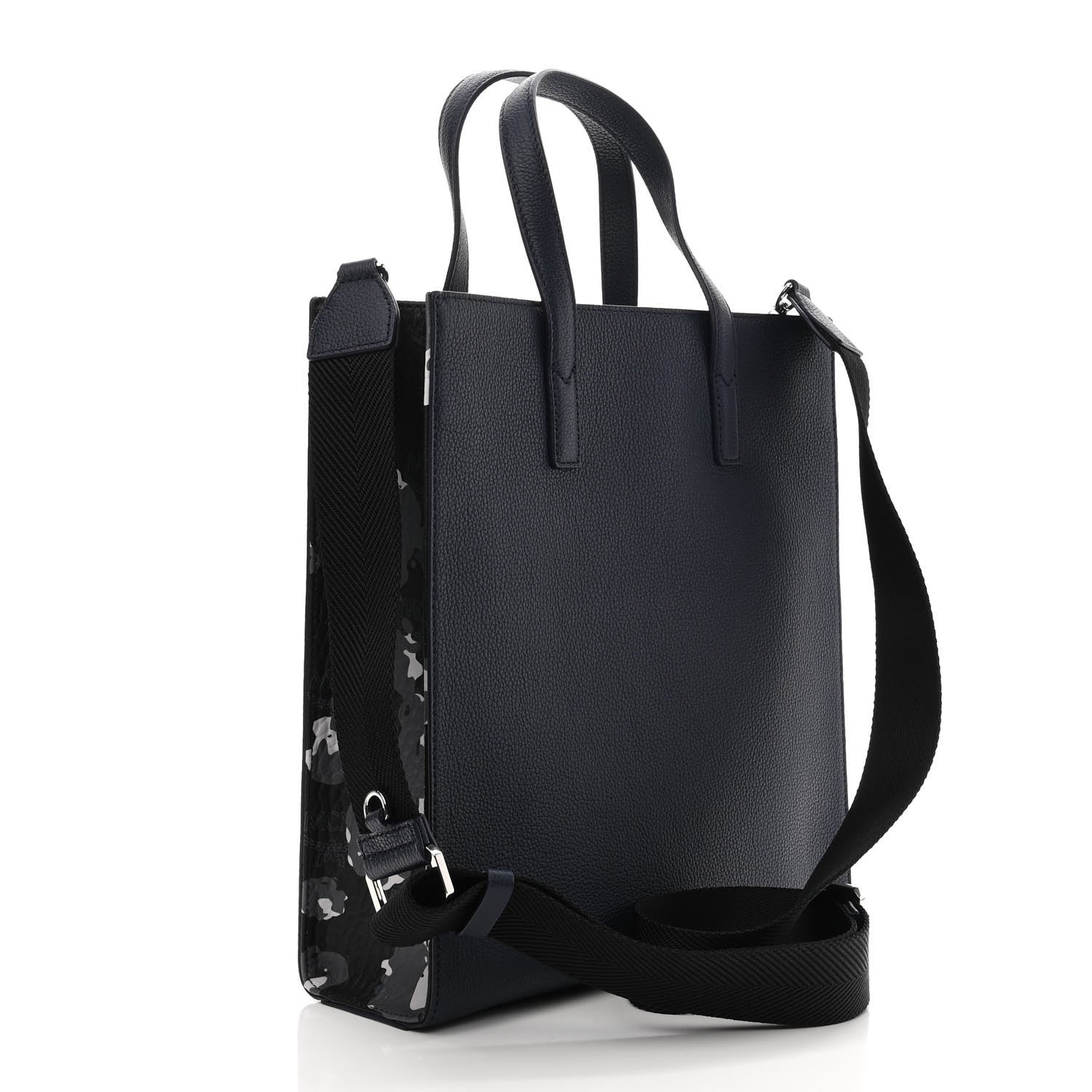 This is an authentic MCM Grained Calfskin Camouflage Small Tote in Black and Camo. This chic tote is crafted of calfskin leather in blue. The tote features cameo printed sides, leather top handles, an optional adjustable nylon shoulder strap, an open top, and a black fabric interior with pockets.Follow this item for alerts. MCM is a registered trademark of MCM. FASHIONPHILE is not affiliated with MCM.