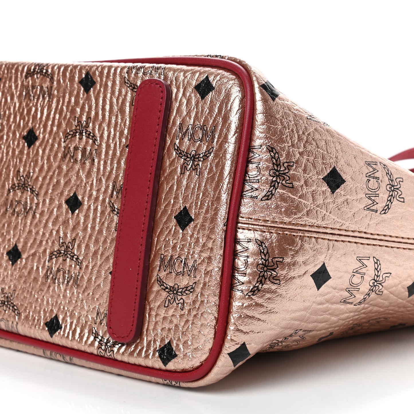 This is an authentic MCM Metallic Visetos Medium Anya Shopper Tote in Champagne Gold. This sophisticated tote is finely crafted of coated canvas in a metallic copper tone with black MCM monogram print. The shoulder bag features leather shoulder straps and polished rose gold tone hardware. The top zipper opens to a brown fabric interior with a zipper pocket.Follow this item for alerts. MCM is a registered trademark of MCM. FASHIONPHILE is not affiliated with MCM.