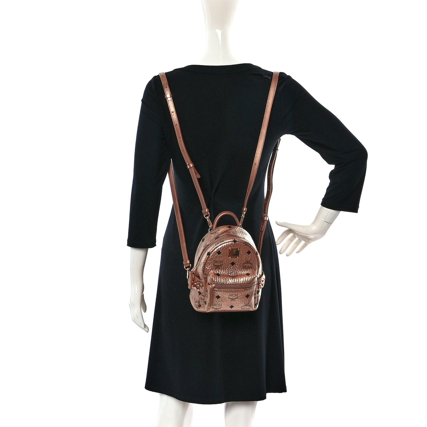 MCM/ Bags/ Handbags /MCM Metallic Visetos Side Stud X-Mini Stark Bebe Boo Backpack Champagne Gold