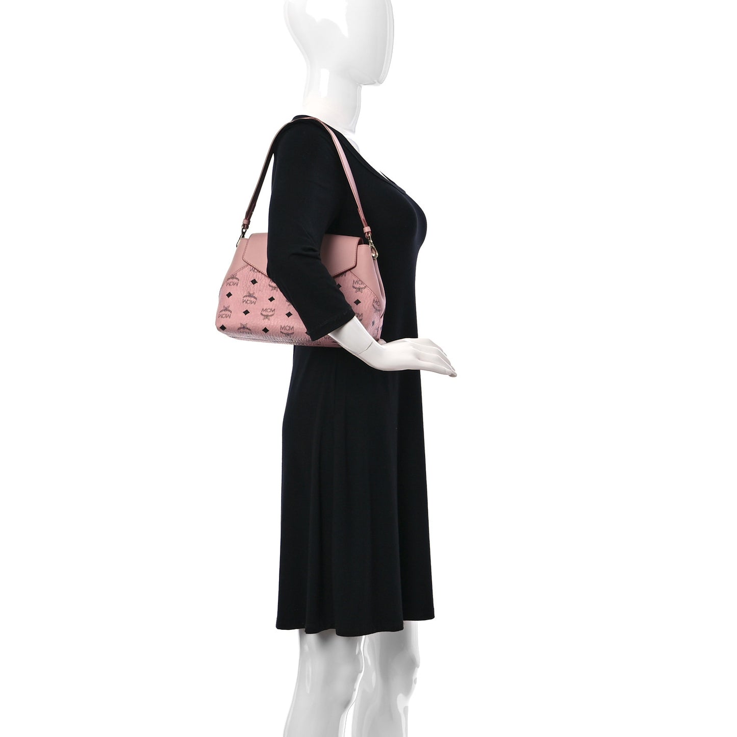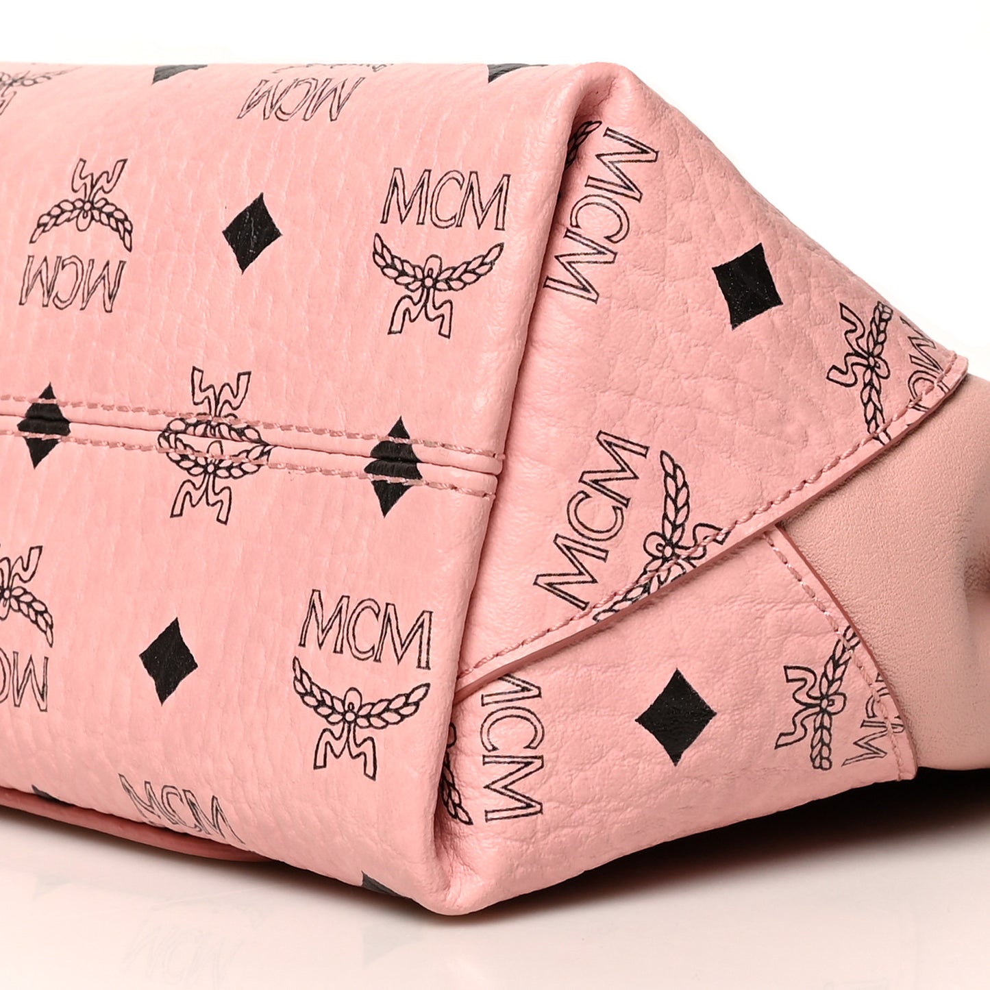 This is an authentic MCM Visetos Essential Flap Shoulder Bag in Soft Pink. This sophisticated tote is finely crafted of calfskin leather and canvas in light pink. It features a rear pocket, a pink leather handle, and an optional adjustable shoulder strap with light gold hardware. The crossover flap opens to a pink fabric interior with a zipper and patched pockets.Follow this item for alerts. MCM is a registered trademark of MCM. FASHIONPHILE is not affiliated with MCM.