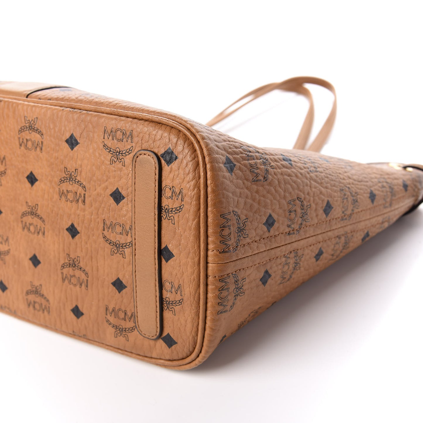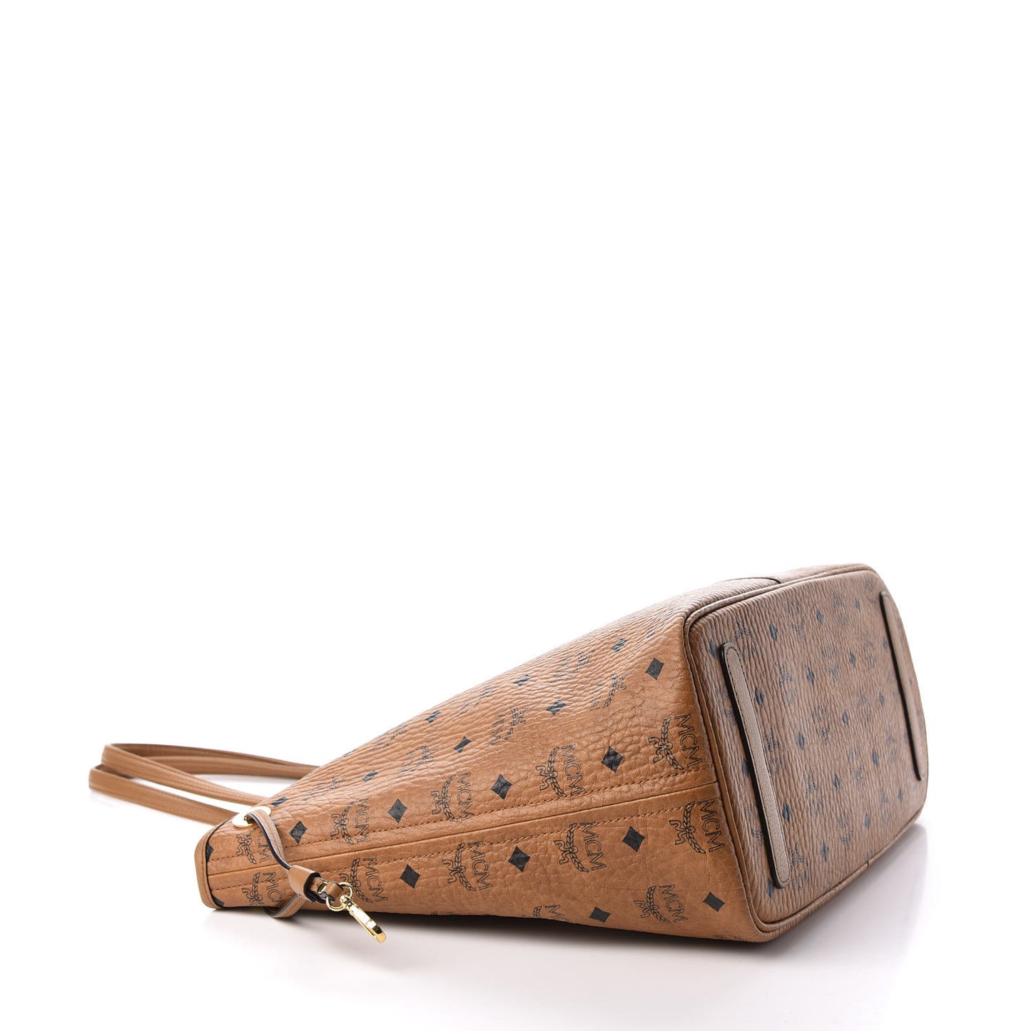 This is an authentic MCM Visetos Medium Liz Reversible Shopper Tote in Cognac. This reversible tote is finely crafted of classic MCM monogram in black on light brown Visetos coated canvas in light brown. The bag features matching brown leather trim, shoulder straps, and side cinch cords with gold hardware. The top is open to a brown checkered fabric interior with a prominent purple MCM logo and a removable zipper pouch. This is a gorgeous tote, suitable for everyday use, from MCM!Follow this item for alerts. MCM is a registered trademark of MCM. FASHIONPHILE is not affiliated with MCM.