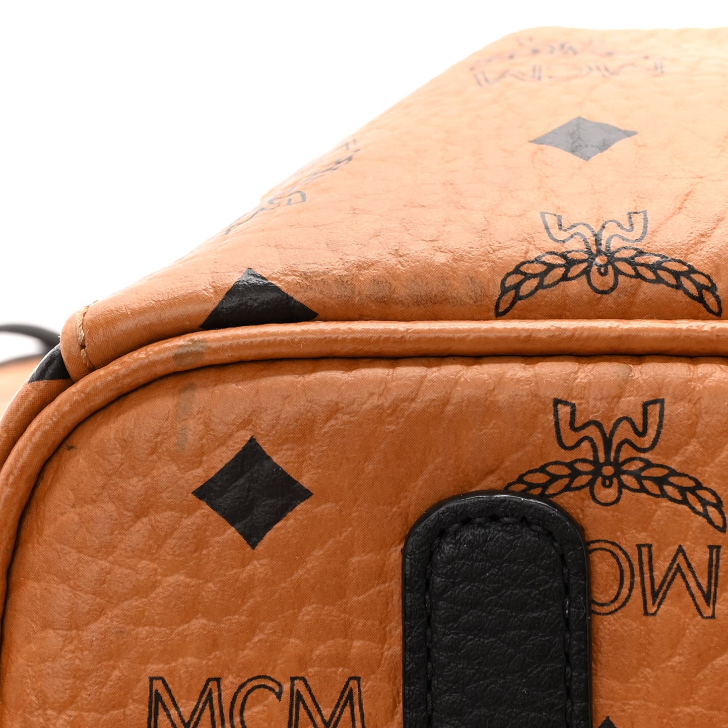 This is an authentic MCM Visetos Medium Project Reversible Shopper Tote in Cognac. This reversible tote is finely crafted of classic MCM monogram in black on light brown Visetos coated canvas. The bag features black leather trim, shoulder straps, side cinch cords with gold hardware. The top is open to a printed fabric interior.Follow this item for alerts. MCM is a registered trademark of MCM. FASHIONPHILE is not affiliated with MCM.