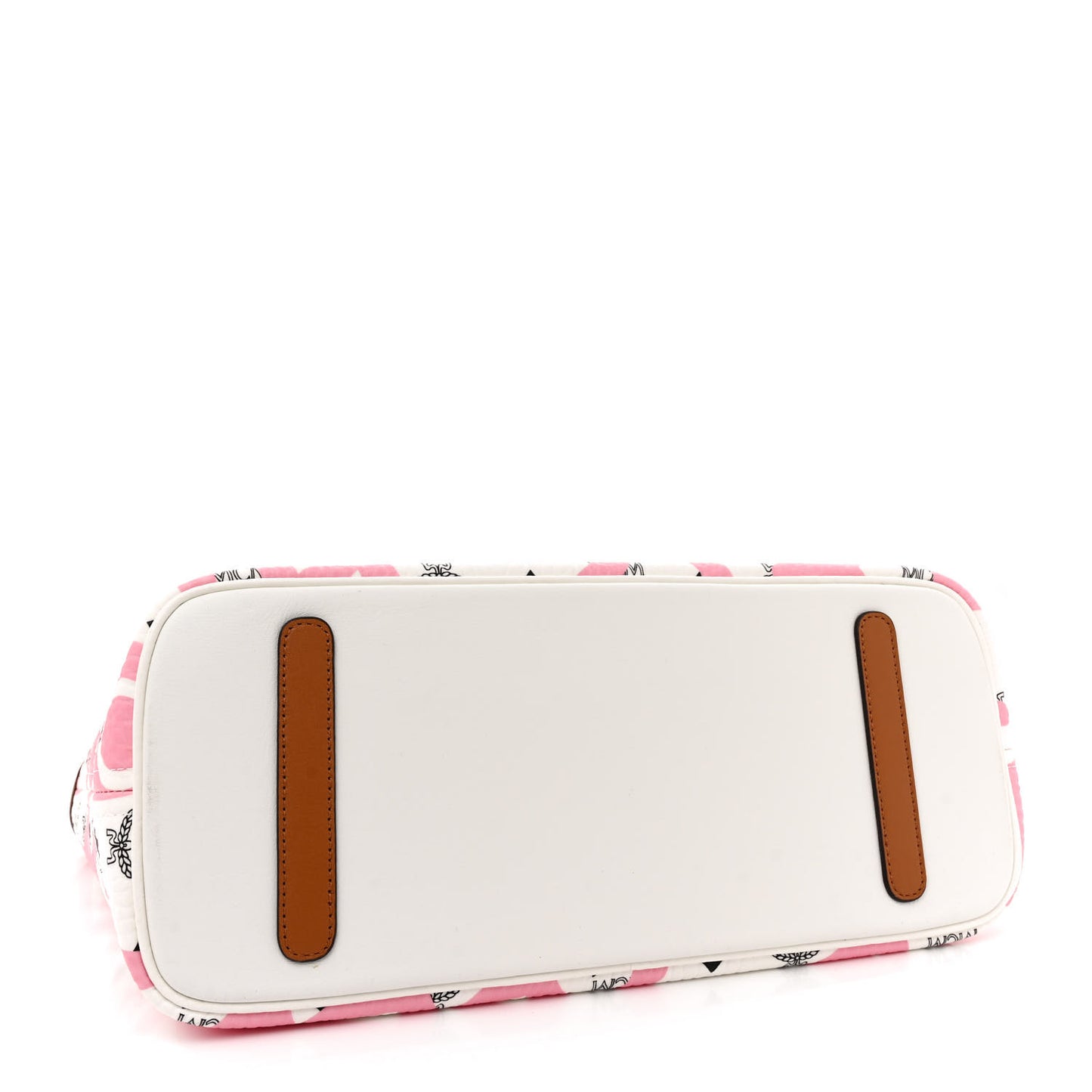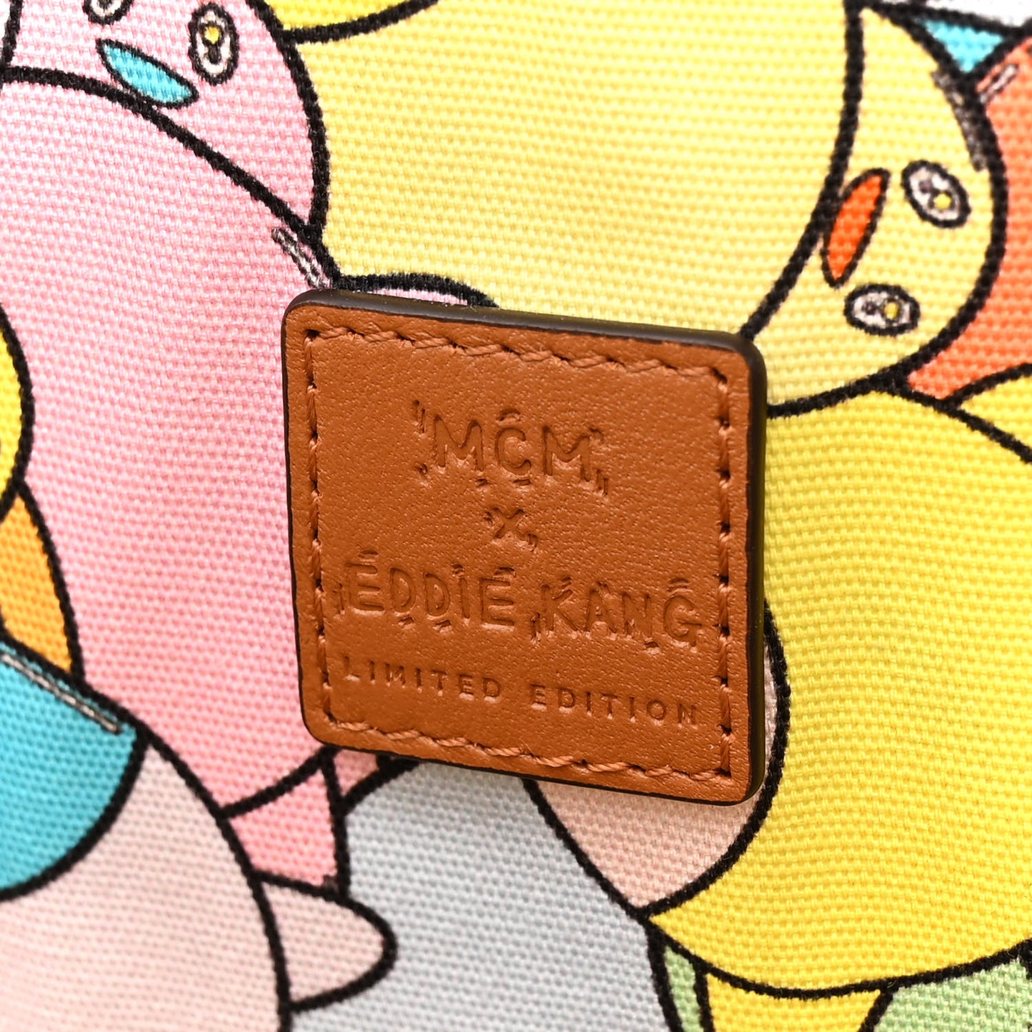 This is an authentic MCM X Eddie Kang Visetos Medium Reversible Shopper Tote in White. This playful tote is finely crafted of MCM monogram coated canvas in white, with an oversized white graphic overlay in pink. The shoulder bag features brown leather trim and strap handles. The top is open to a vibrantly colored character print interior with a removable pouch.Follow this item for alerts. MCM is a registered trademark of MCM. FASHIONPHILE is not affiliated with MCM.
