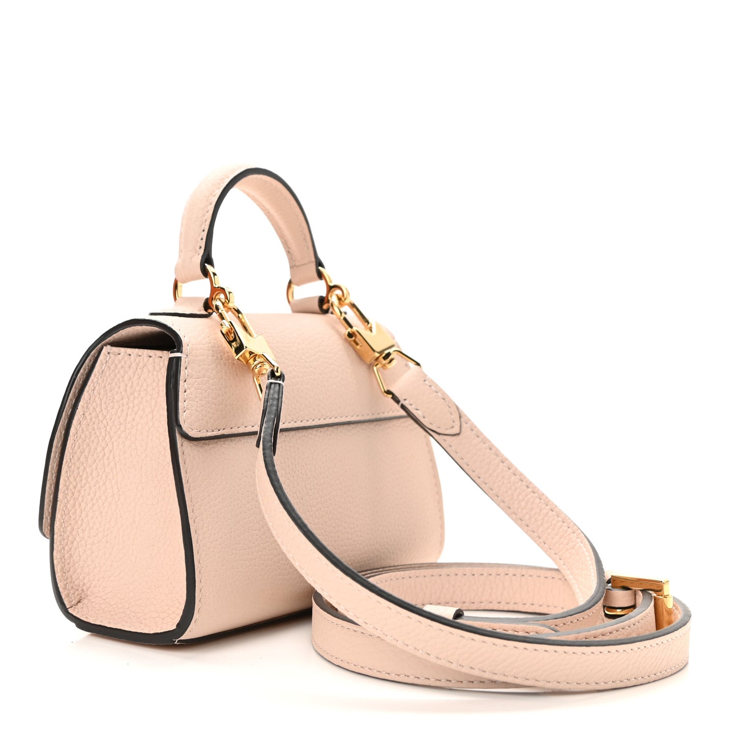 This is an authentic MOYNAT Taurillon Blush Rejane Nano in Powder. This chic bag is finely crafted of beige grained calfskin leather which maintains a structured silhouette. The bag features a leather top handle, an optional shoulder strap, and gold hardware. The overlay flap has a push-lock closure that opens to a tan leather interior with a patch pocket.Follow this item for alerts. Moynat is a registered trademark of Moynat. FASHIONPHILE is not affiliated with Moynat.
